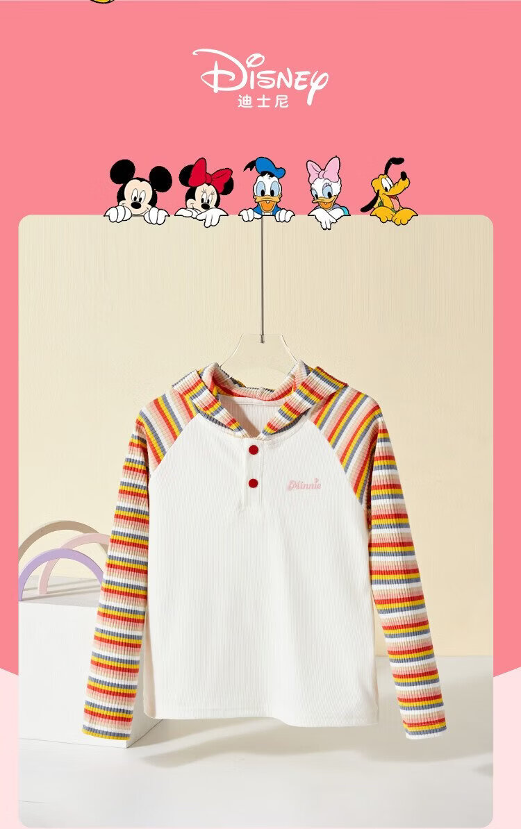 Disney children's T-shirt long-sleeved baby bottoming shirt children's 2026 spring new children's clothing hooded striped all-match top