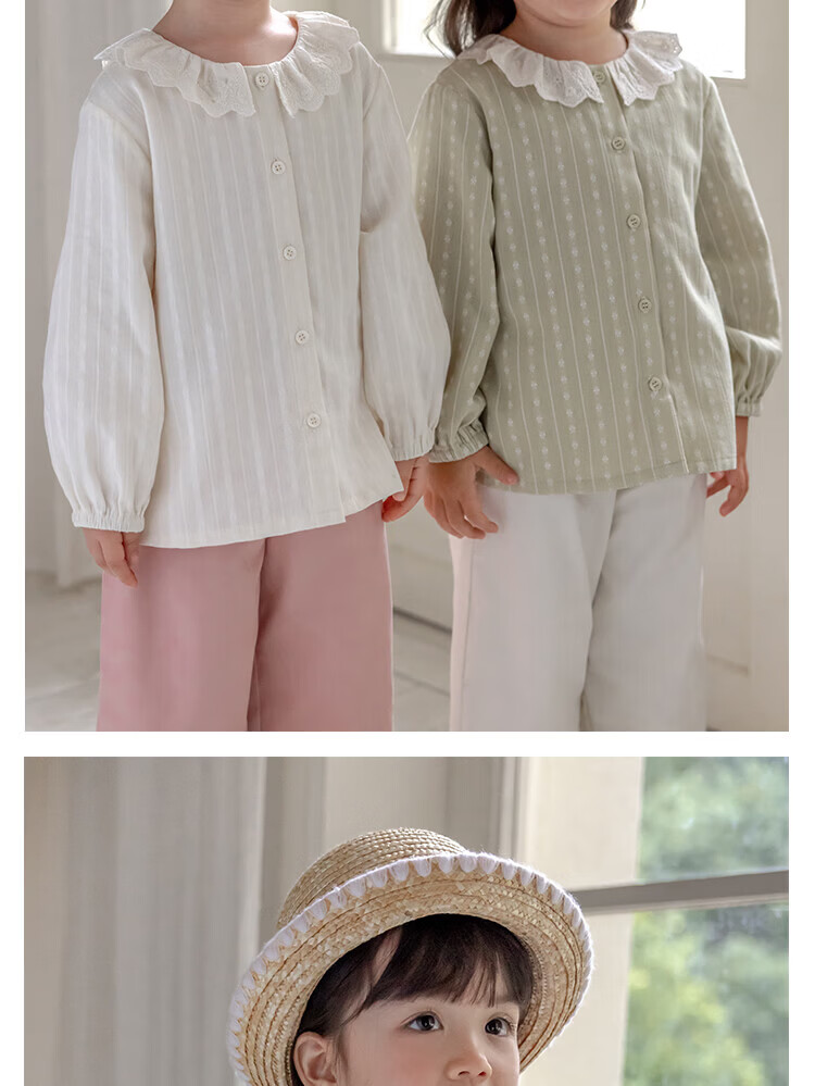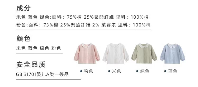 YOUGE (YOUGE) infant spring new style fresh and sweet skin-friendly combed cotton hollow doll collar long sleeves