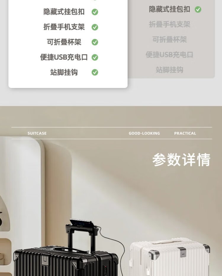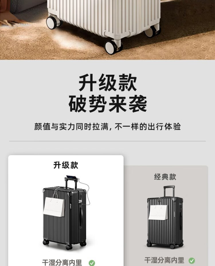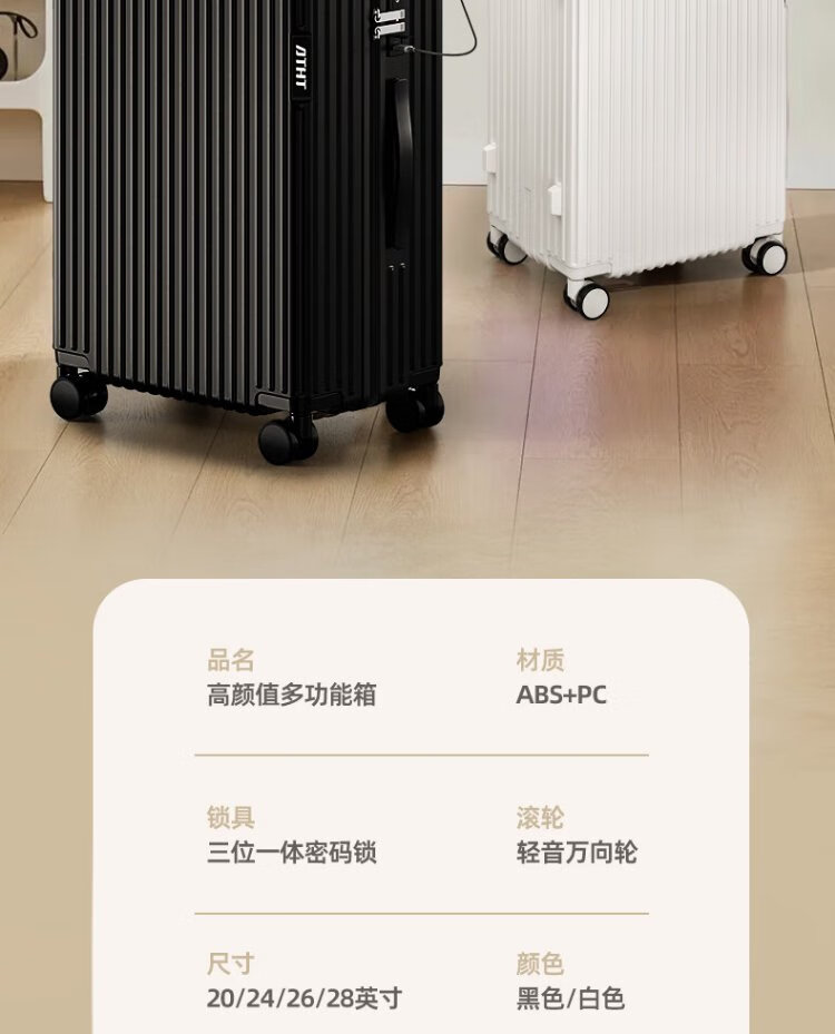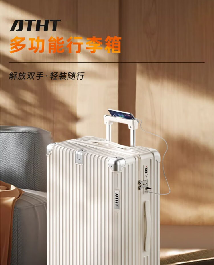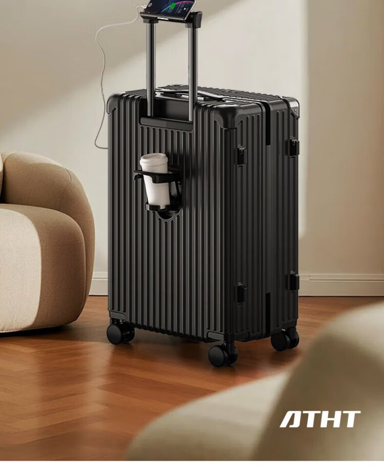 ATHT luggage multi-functional trolley suitcase business small boarding password case leather suitcase black 20 inches