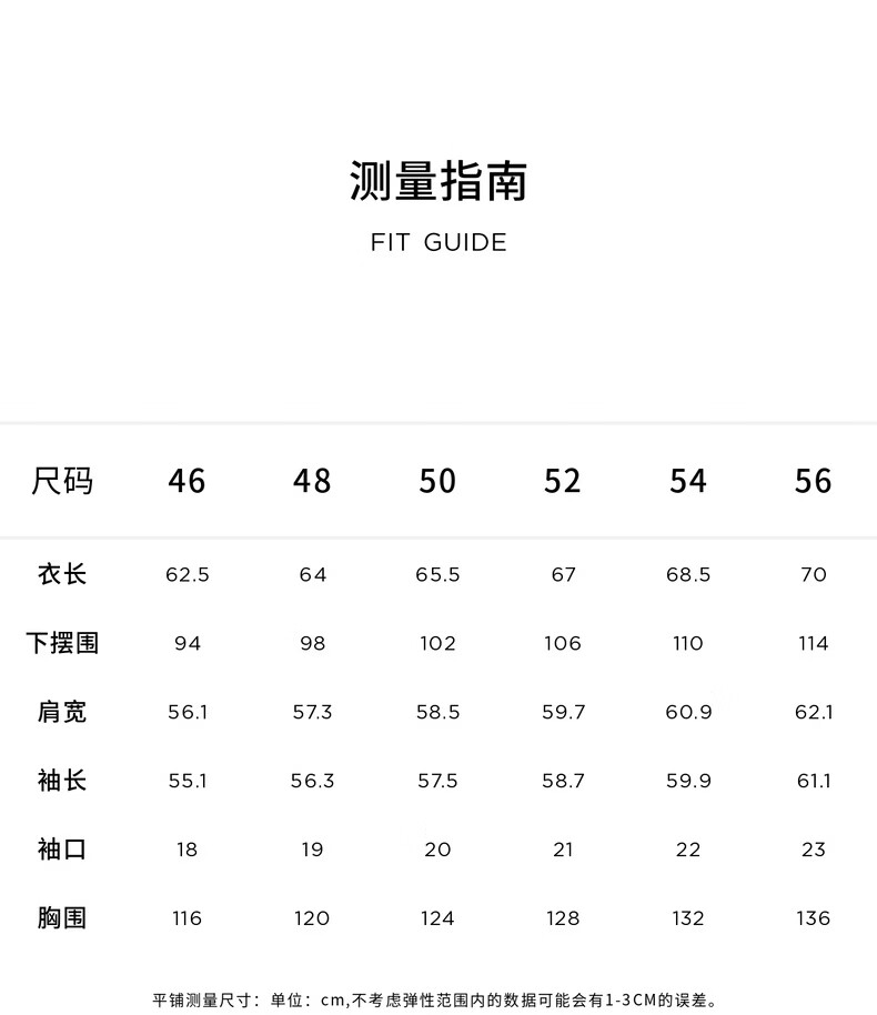China (cm) 165 / 88-90 170 / 96-98 175 / 108-110 180 / 118-122 185 / 126-130