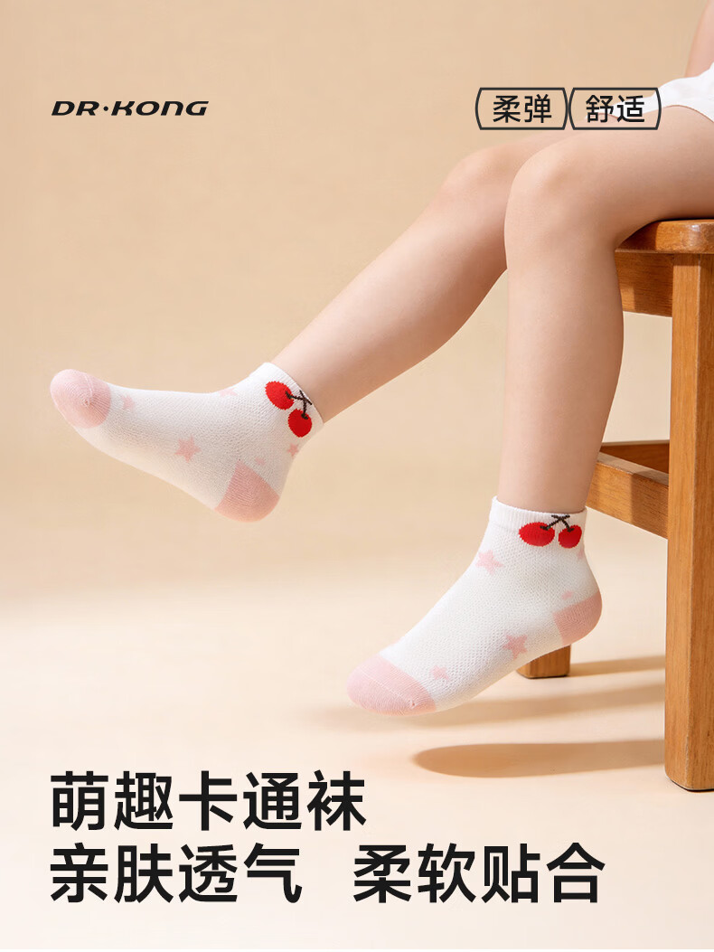 DR KONG Children's Socks Comfortable Casual Color Socks (2 pairs 1 set) Spring and Autumn Style A00B1161 White/Pink