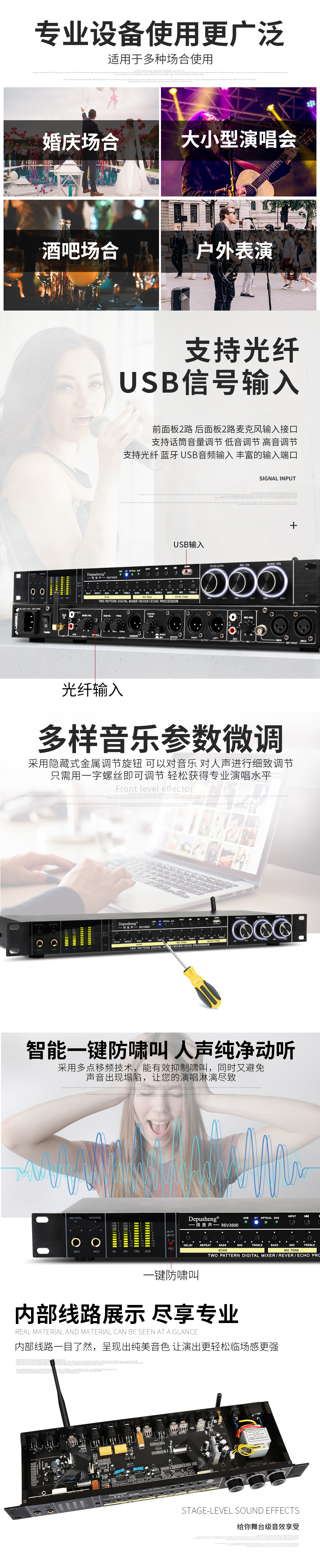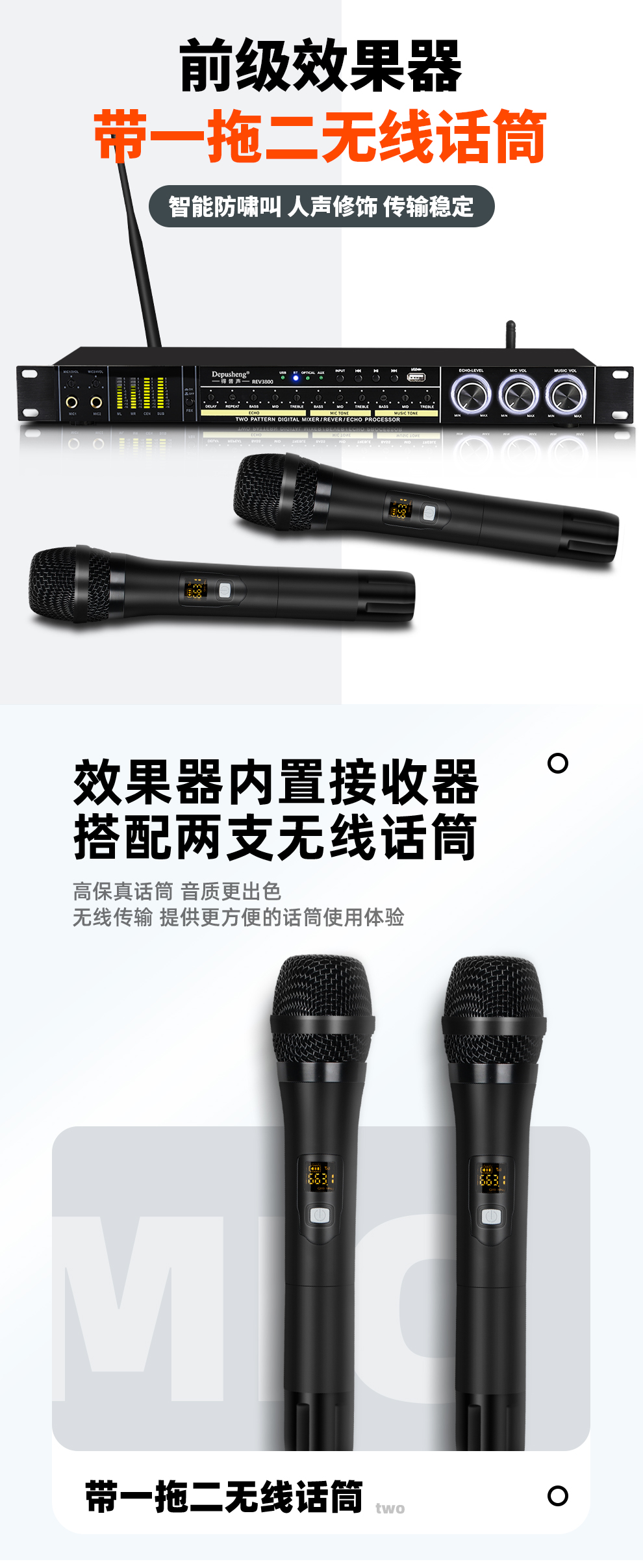 Depusheng Depusheng REV3800 pre-amp effector anti-howling KTV stage home karaoke double reverberation microphone simulated balanced karaoke wireless microphone REV3800 effector (with dual handheld)