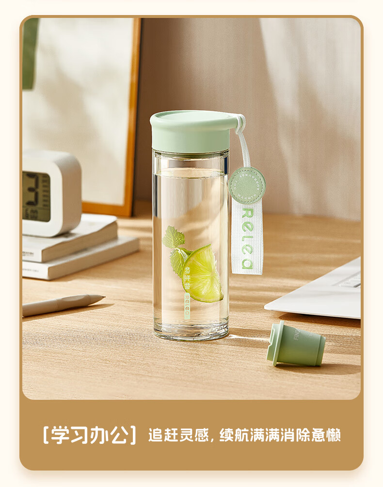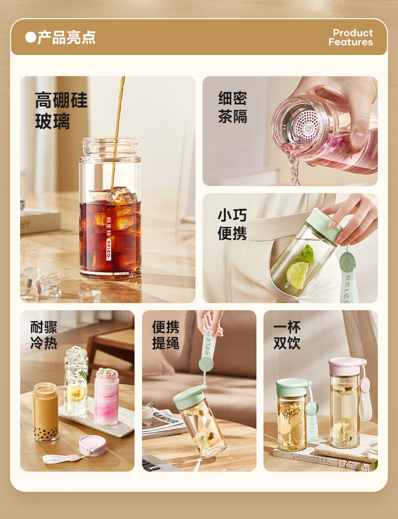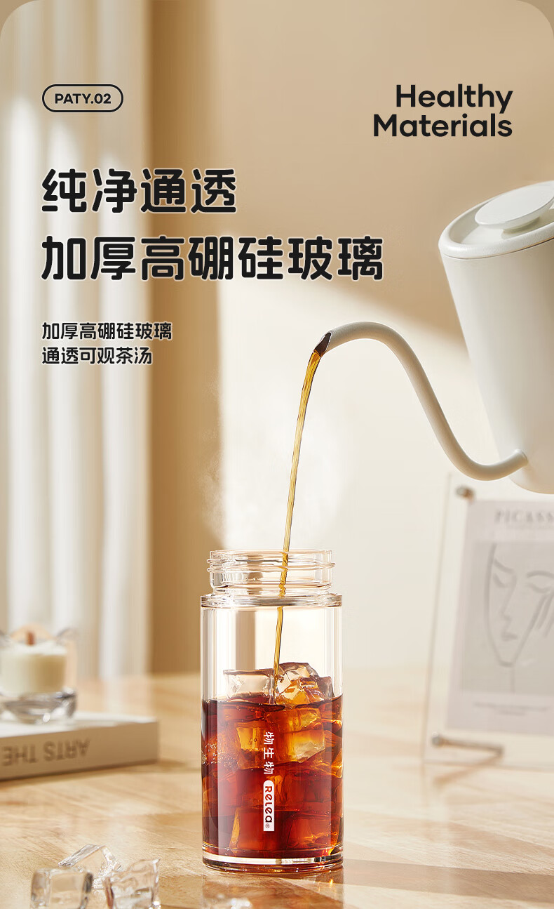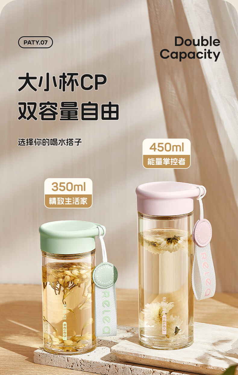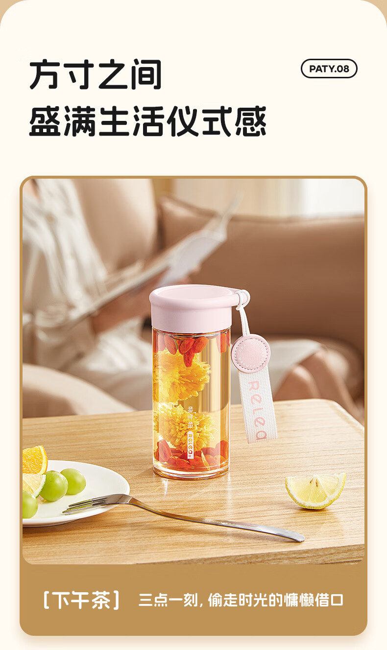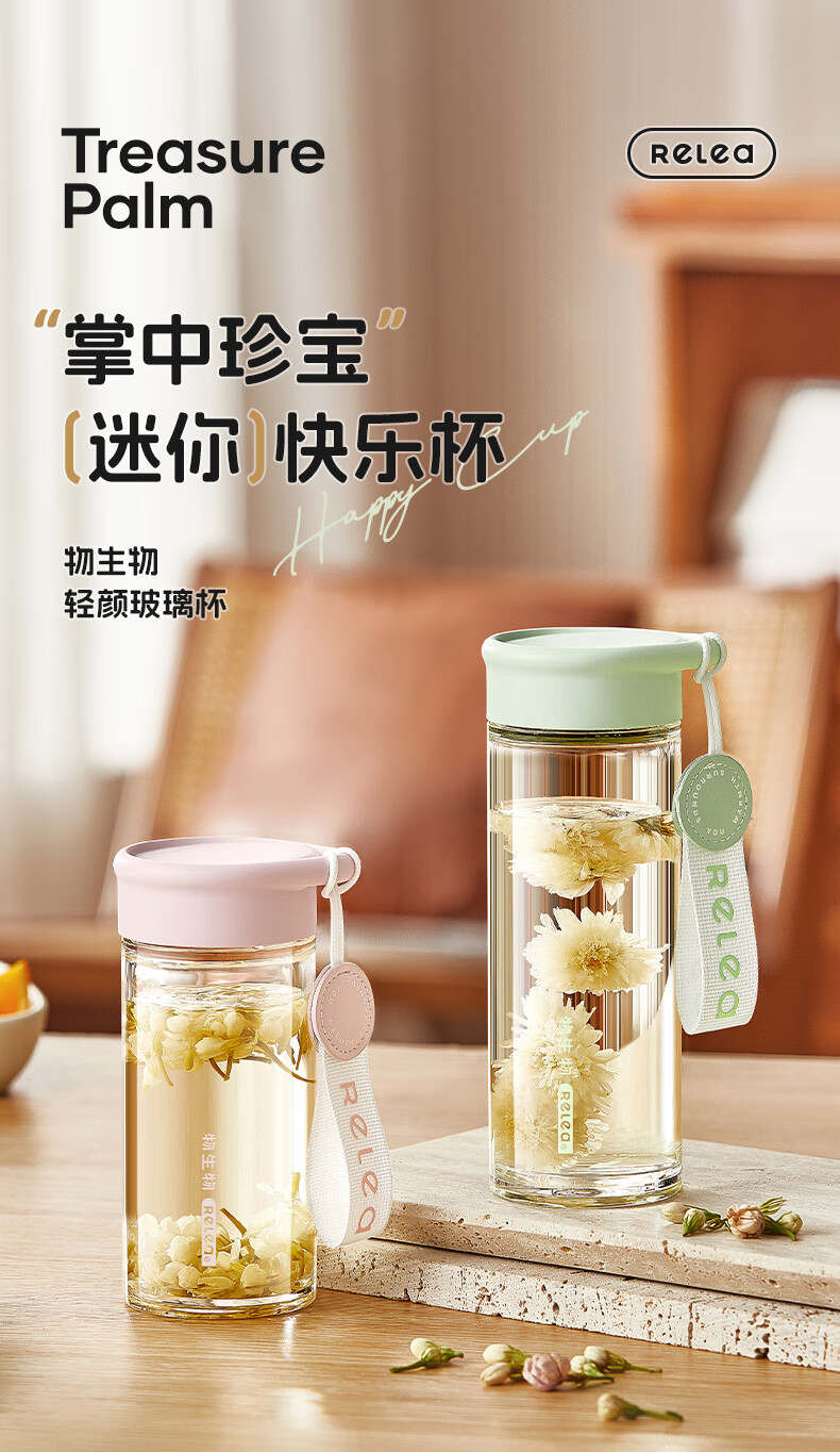 RELEA Tea and Water Separation Glass Water Cup Women's Coffee Scented Tea Cup Large Capacity Office High-Value Gift