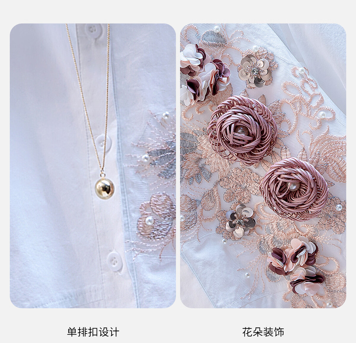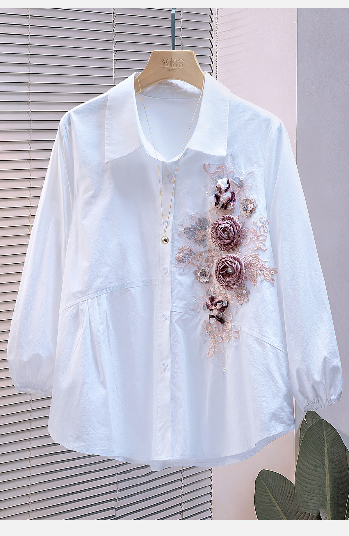 Cypress lapel three-dimensional flower long-sleeved shirt for women 2026 spring new fashion loose temperament shirt