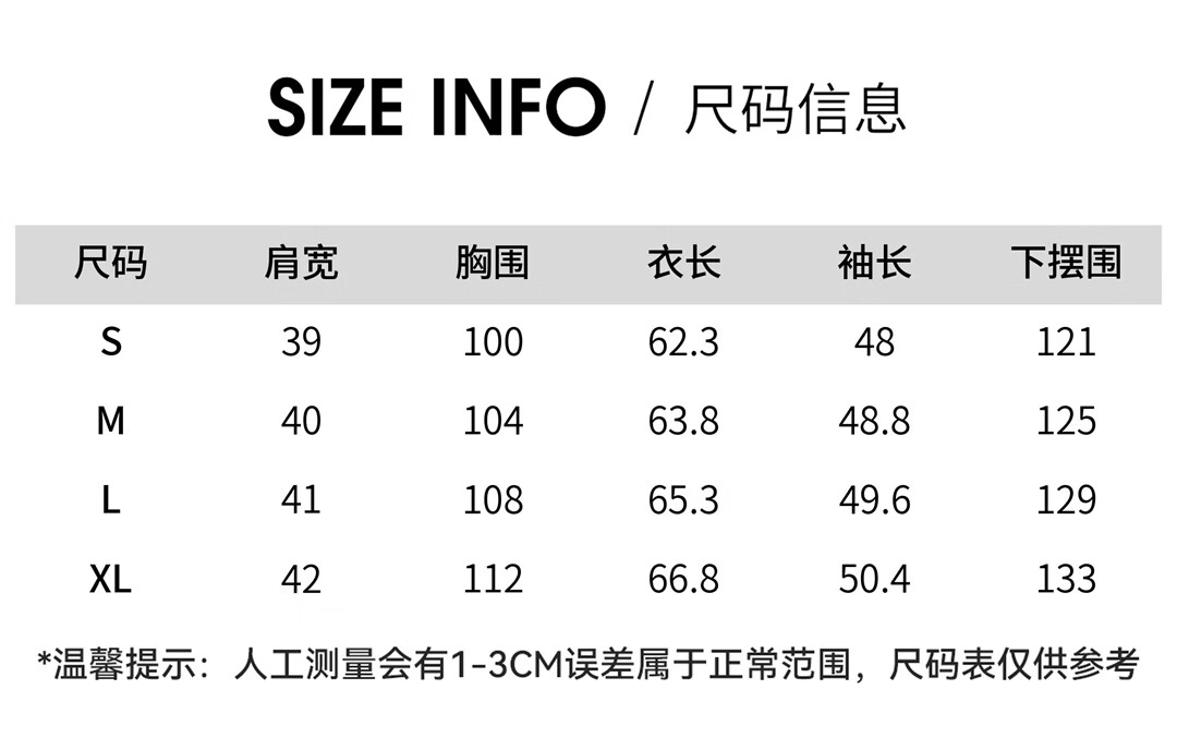 China (cm) 165 / 88-90 170 / 96-98 175 / 108-110 180 / 118-122 185 / 126-130