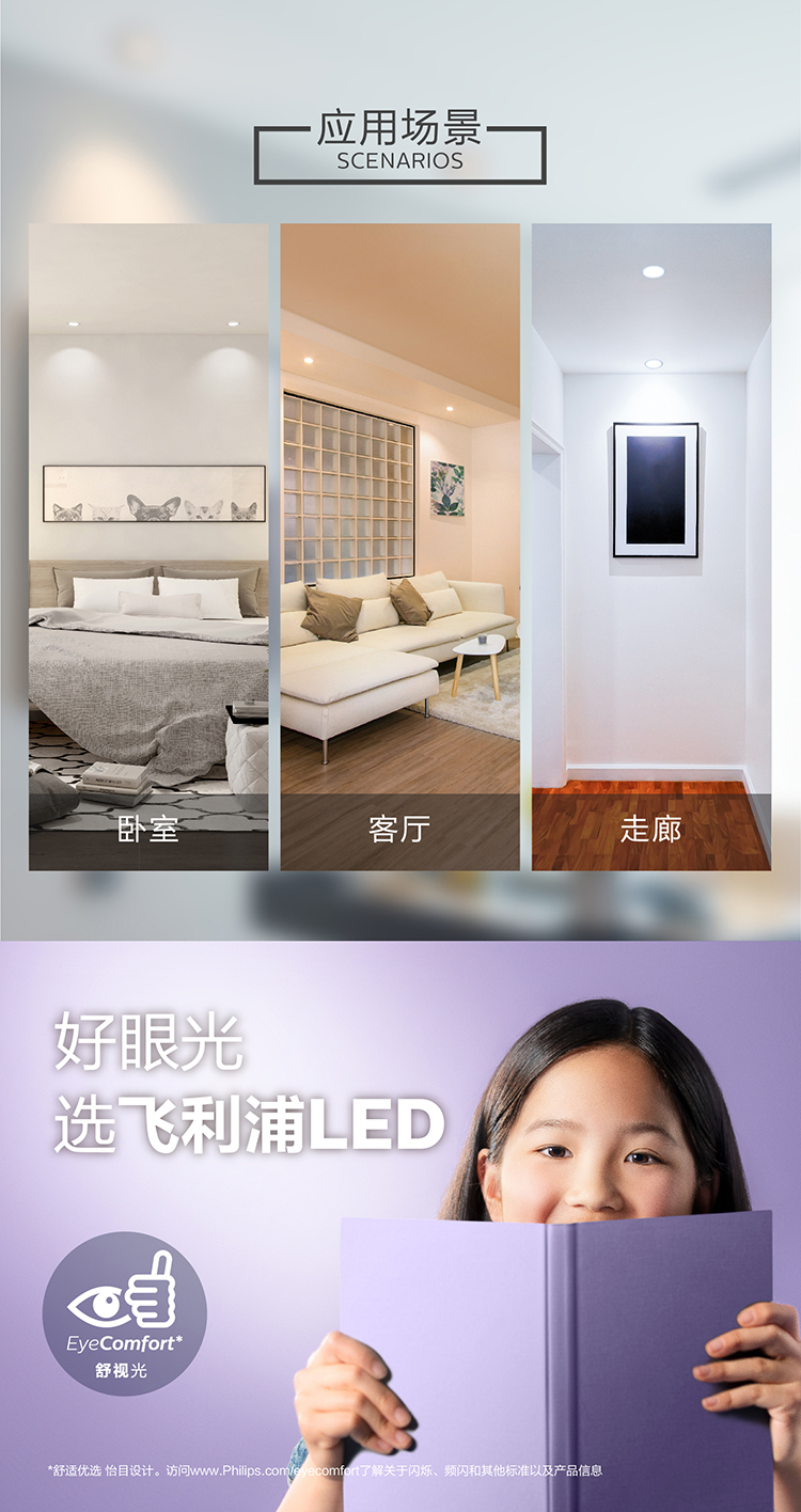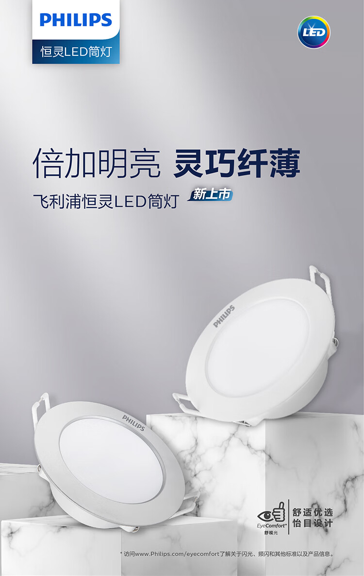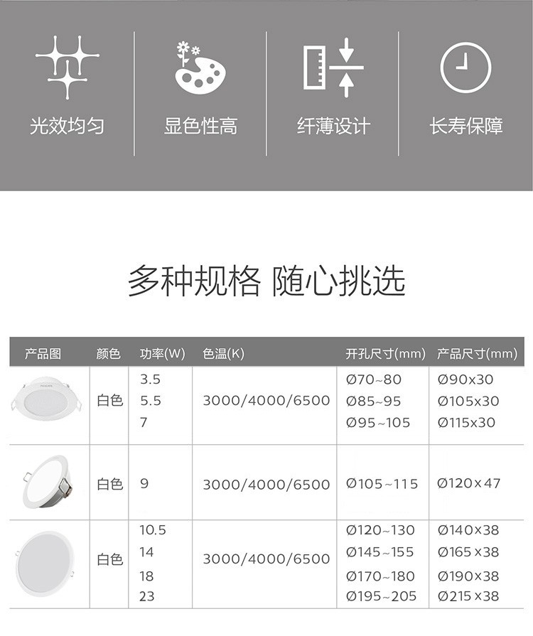 Philips (PHILIPS) LED downlight embedded ceiling aisle three-color hole light ultra-thin barrel light hole light downlight 3.5W opening 70-80mm white light 6500K