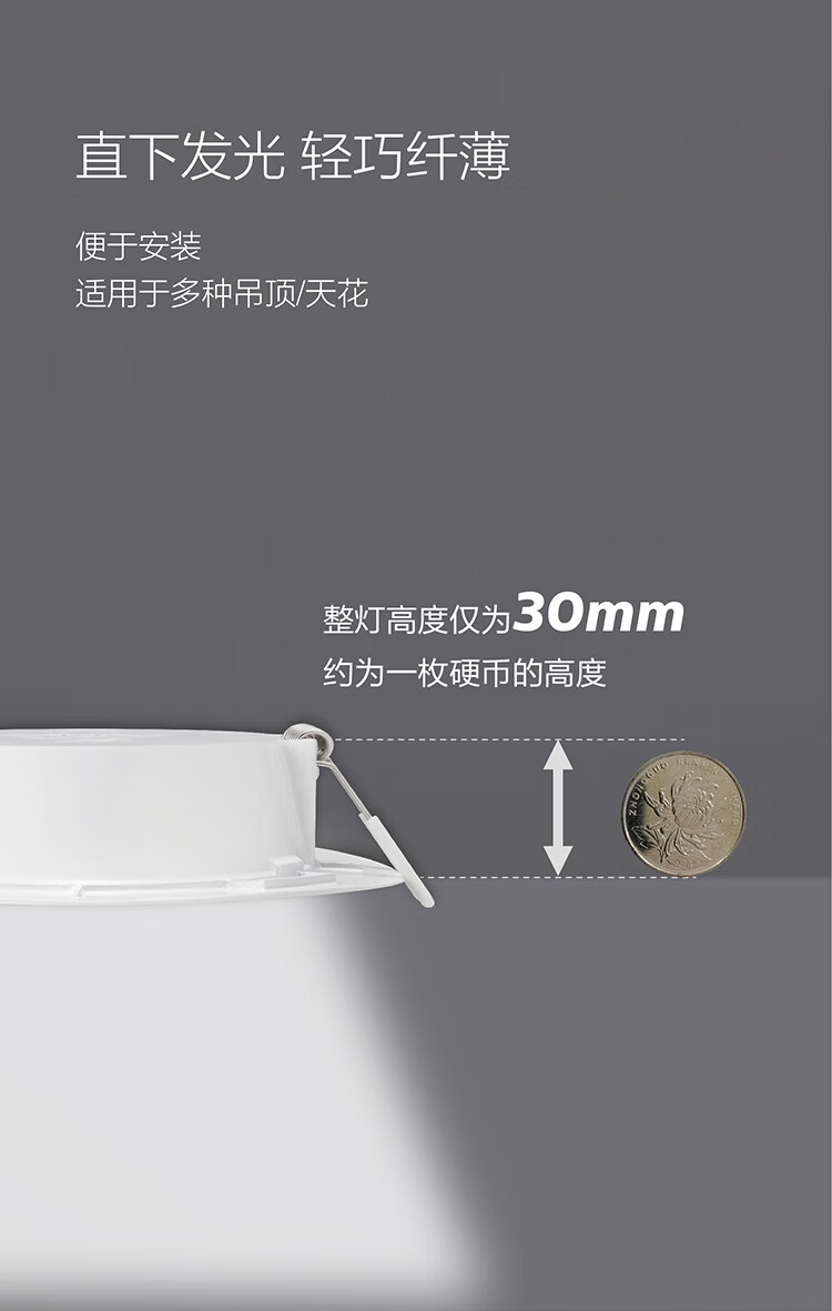 Philips (PHILIPS) LED downlight embedded ceiling aisle three-color hole light ultra-thin barrel light hole light downlight 10.5W opening 120-135mm cool white light 6500K