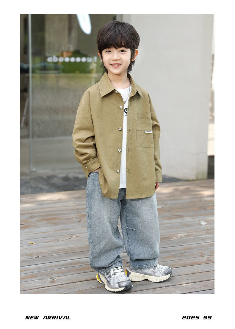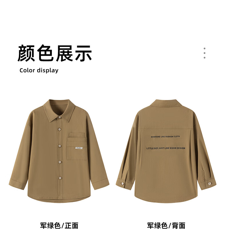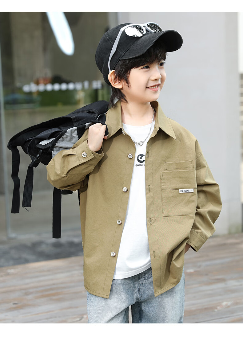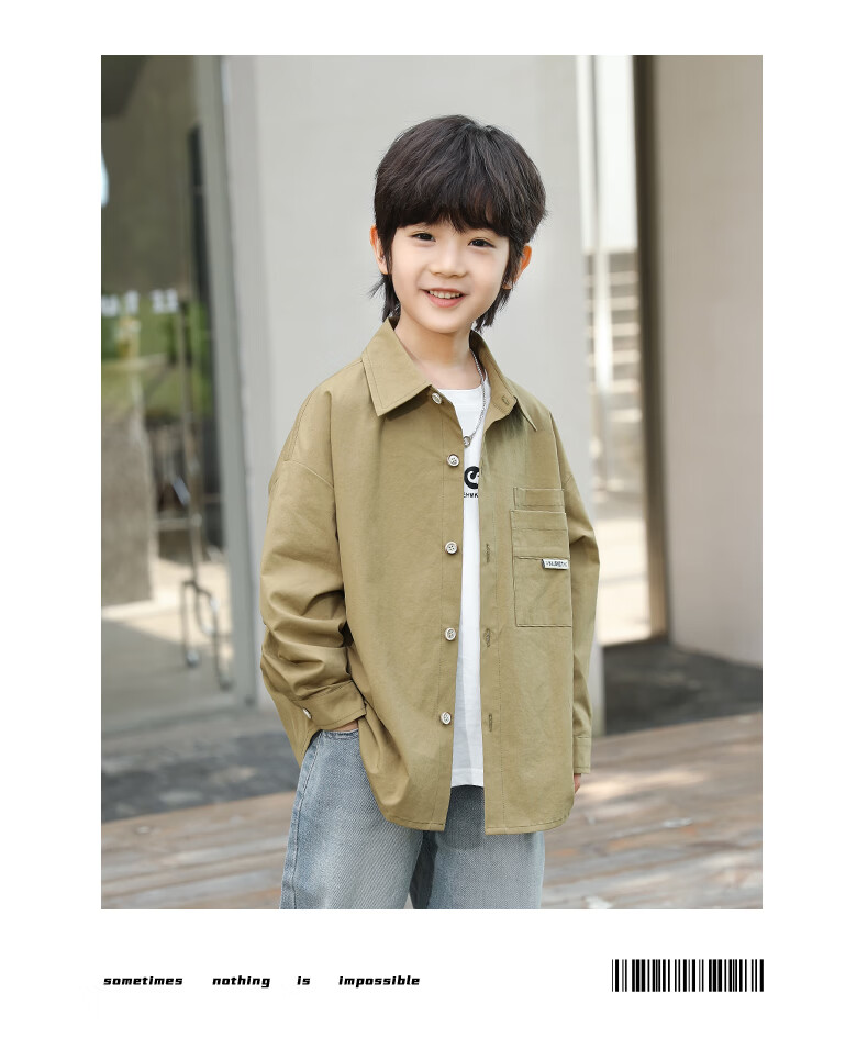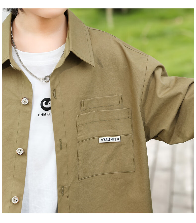 Little Elephant Ham boys' long-sleeved shirts pure cotton children's shirts spring boys' style tops army green 160cm