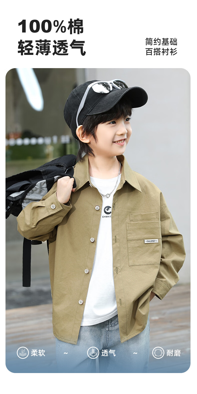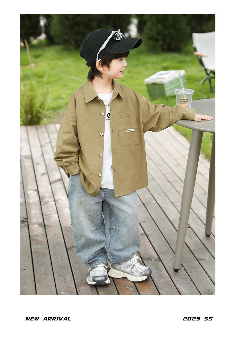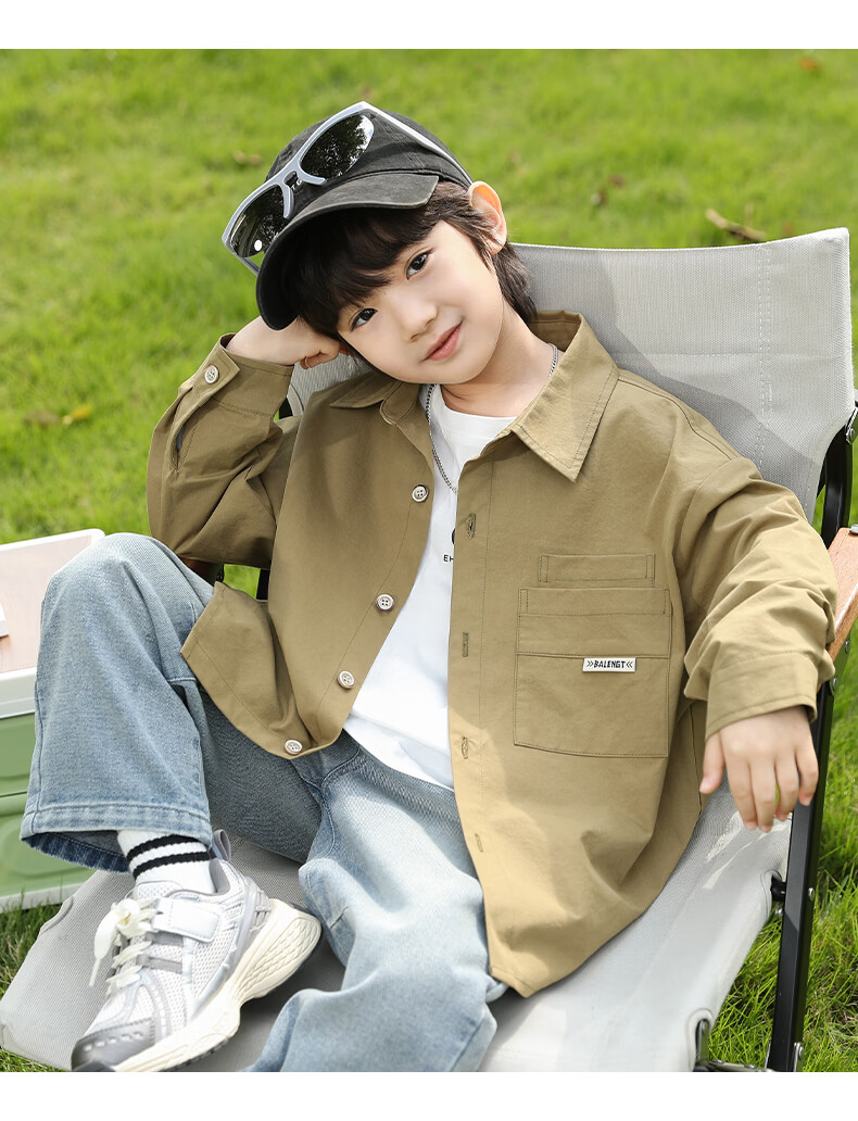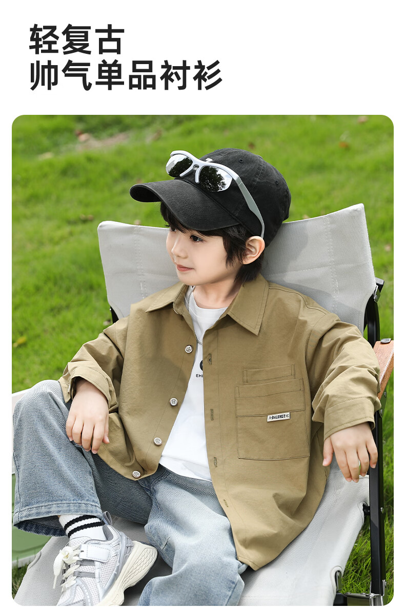 Little Elephant Ham boys' long-sleeved shirts pure cotton children's shirts spring boys' style tops army green 160cm