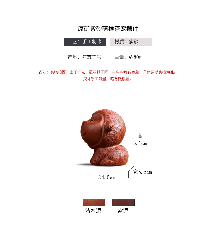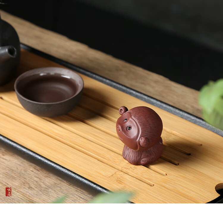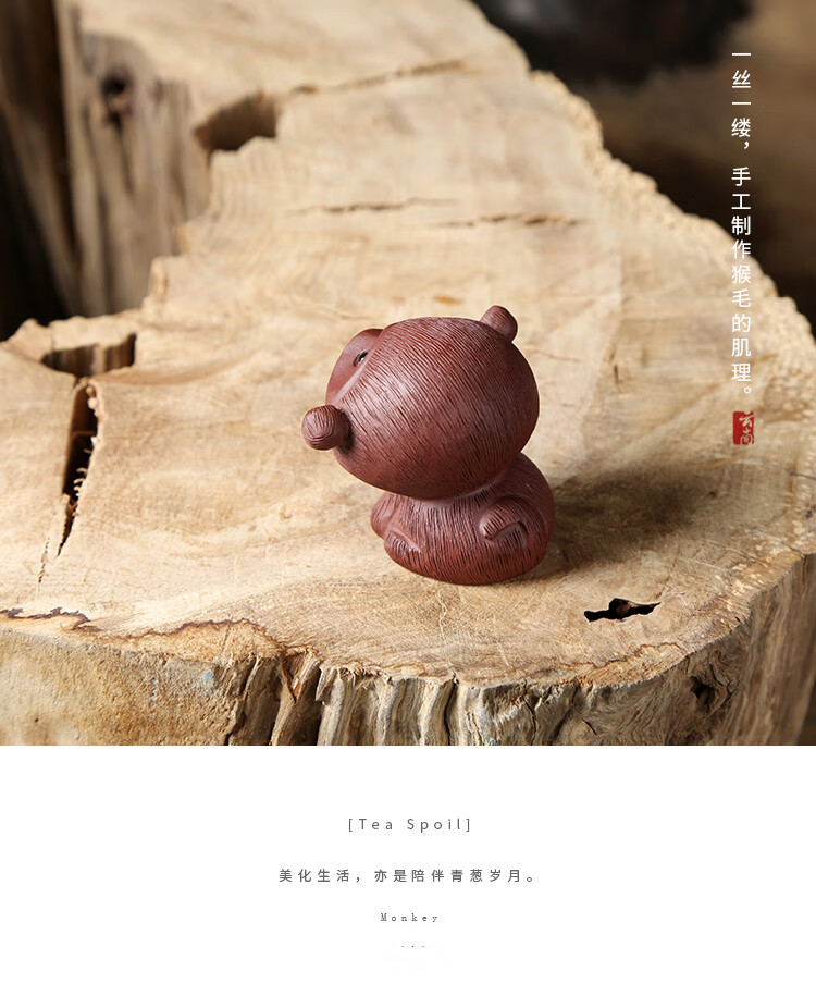 Tao Yunshang Yixing purple sand cute monkey tea pet boutique handmade purple mud clear cement monkey zodiac can raise tea and play ceramic ornaments purple sand cute monkey purple mud