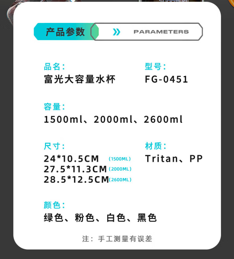 Fuguang plastic cup large capacity tritan material male student summer cup fitness sports water cup pot ton cup bucket