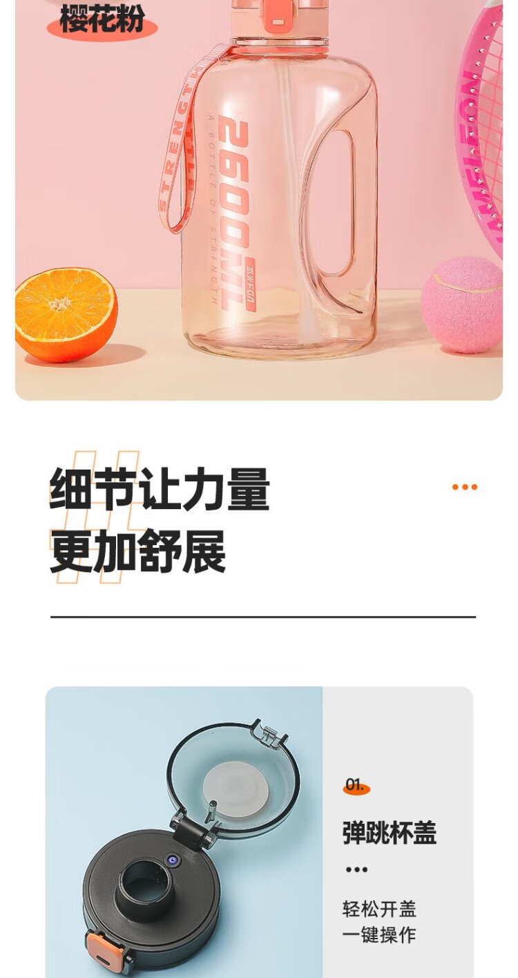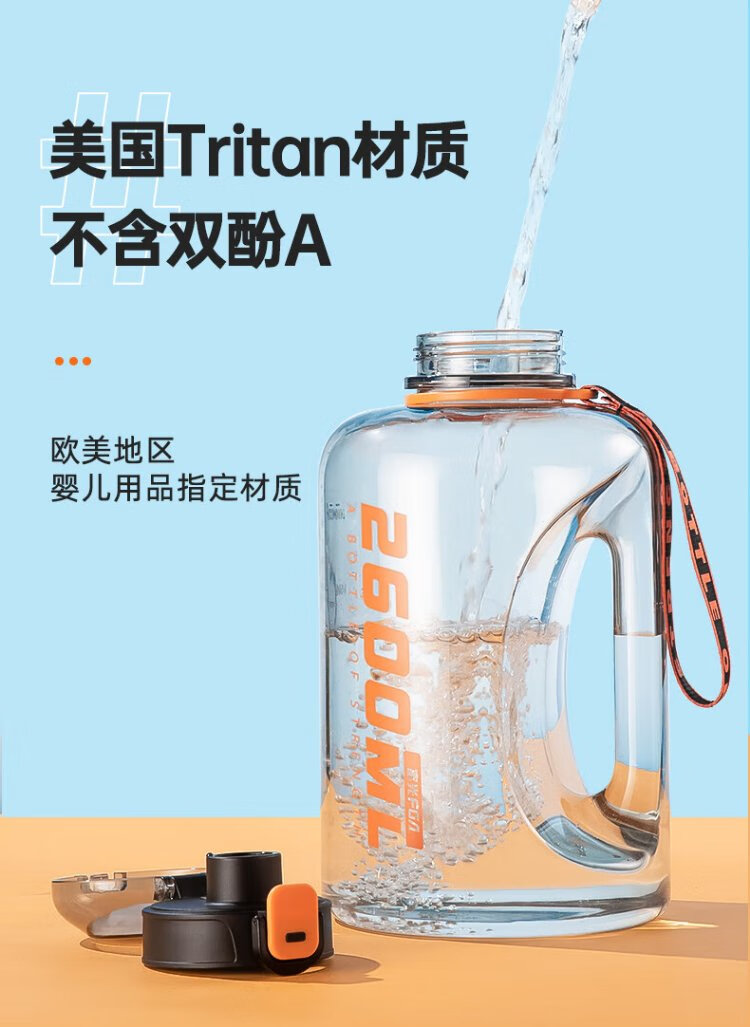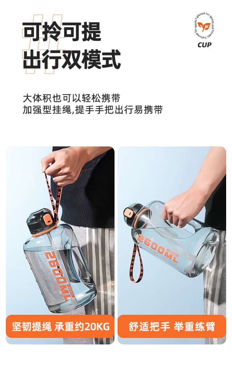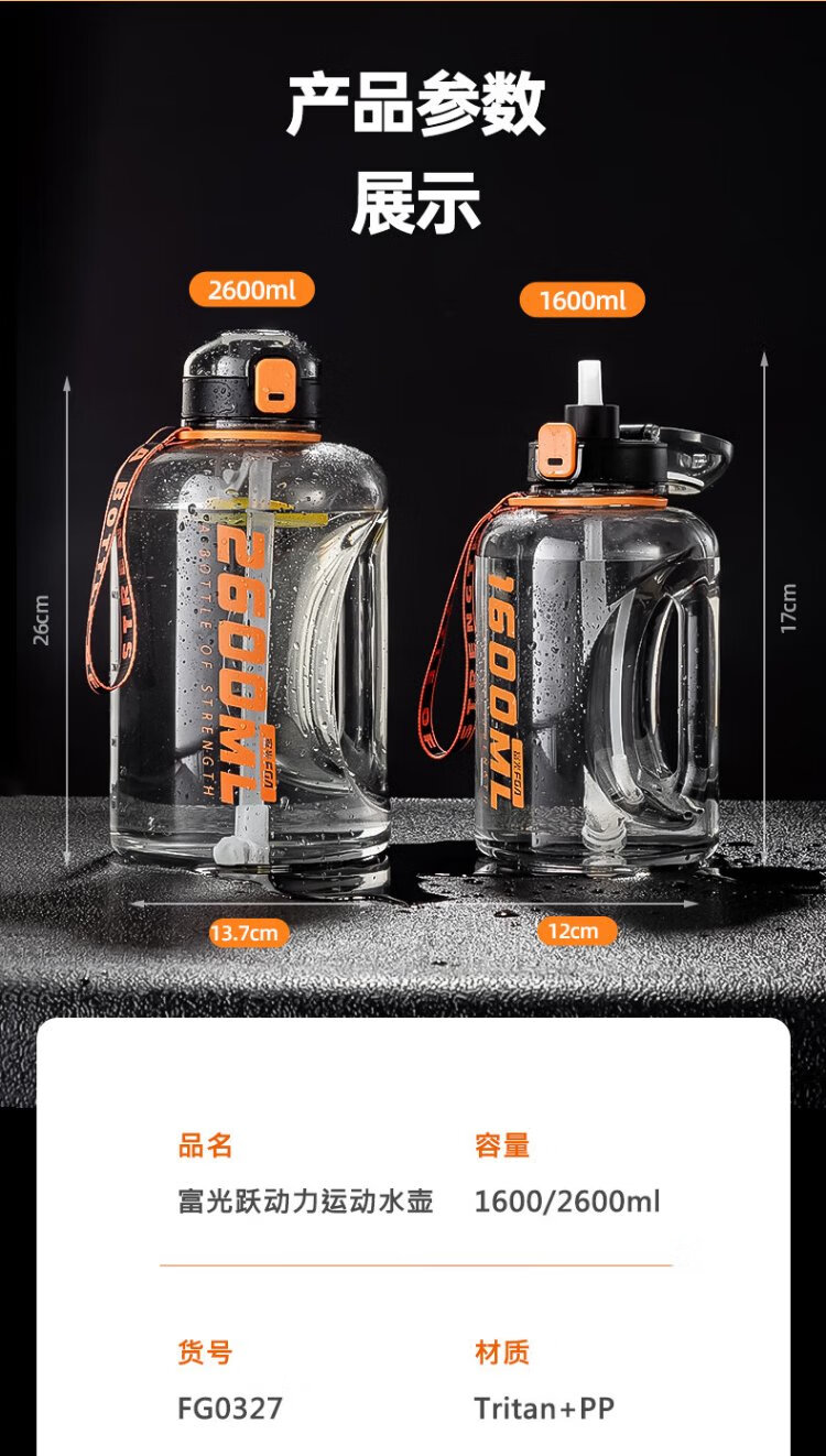 Fuguang Plastic Cup Ton Cup Bucket Large Capacity Water Cup Tritan Material Straw Cup Outdoor Sports Portable Cup 1600ML
