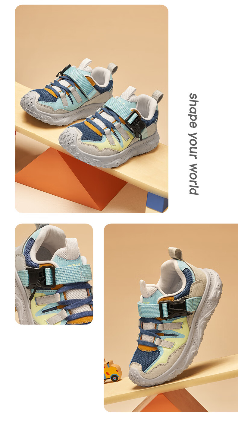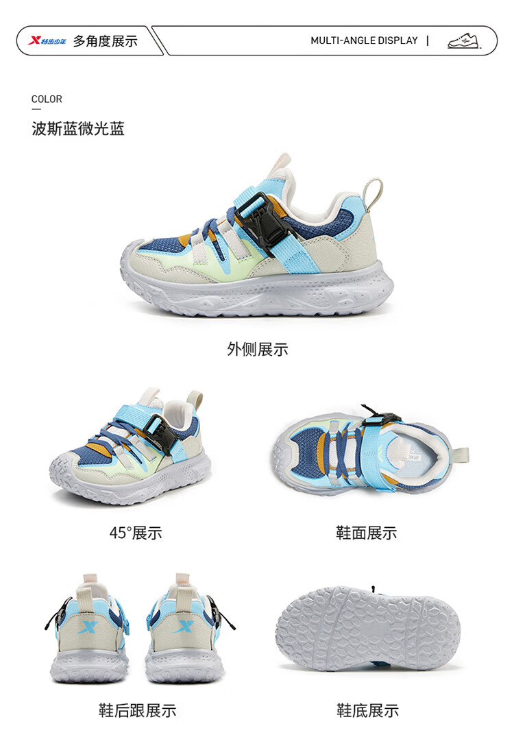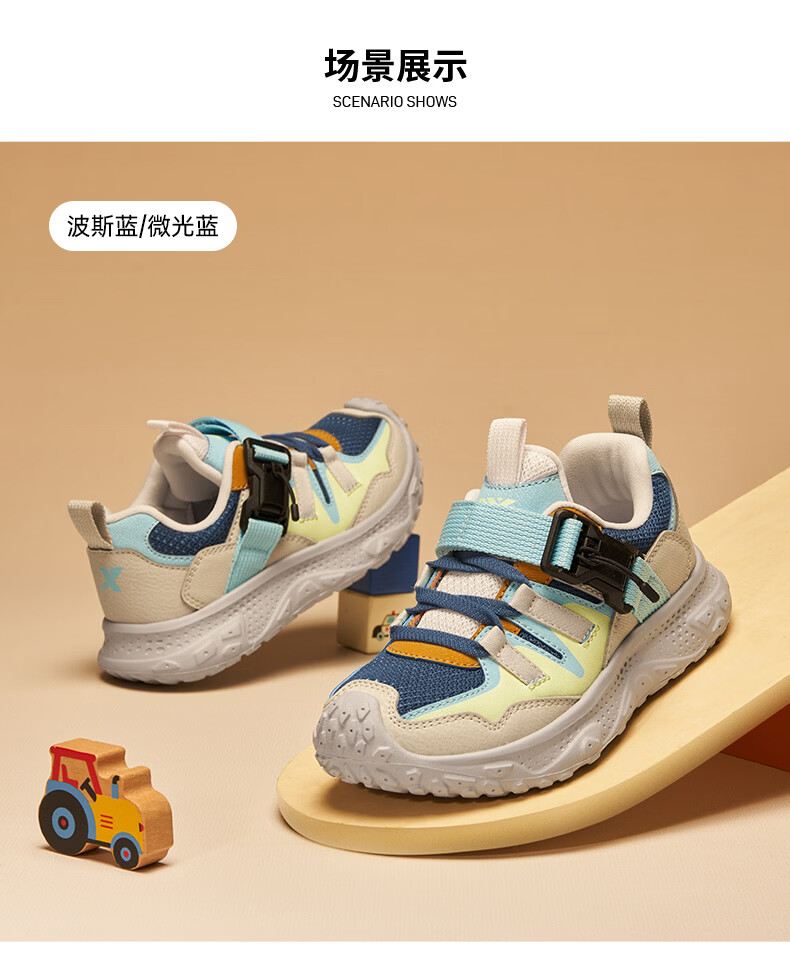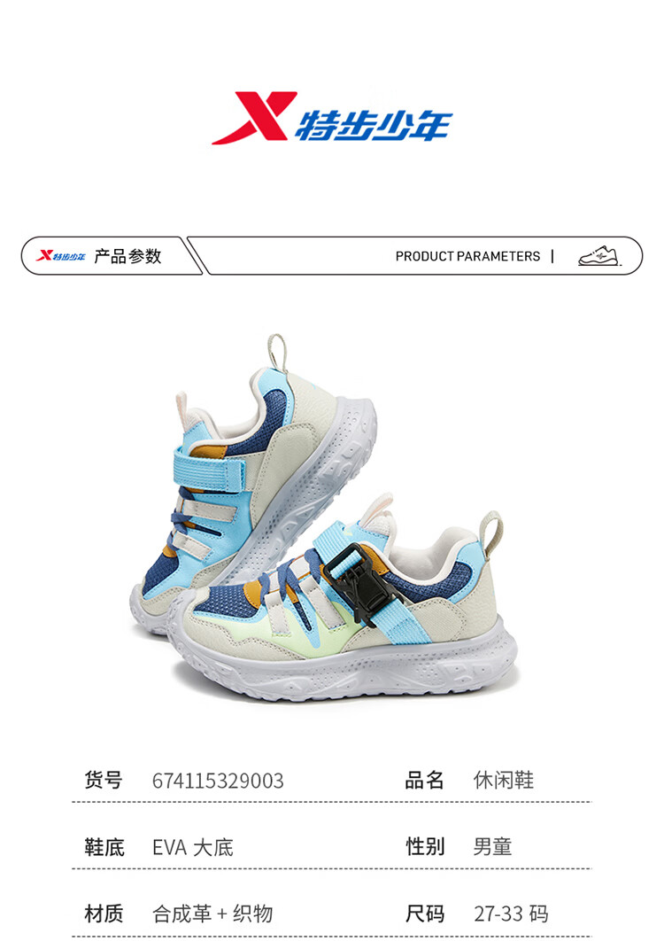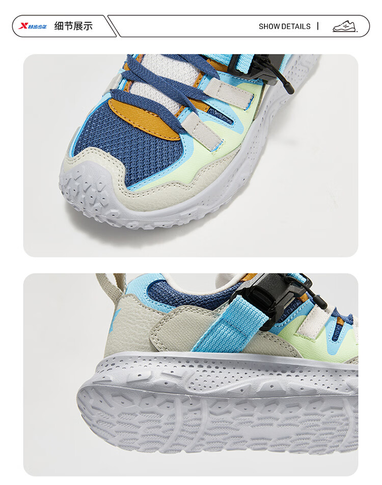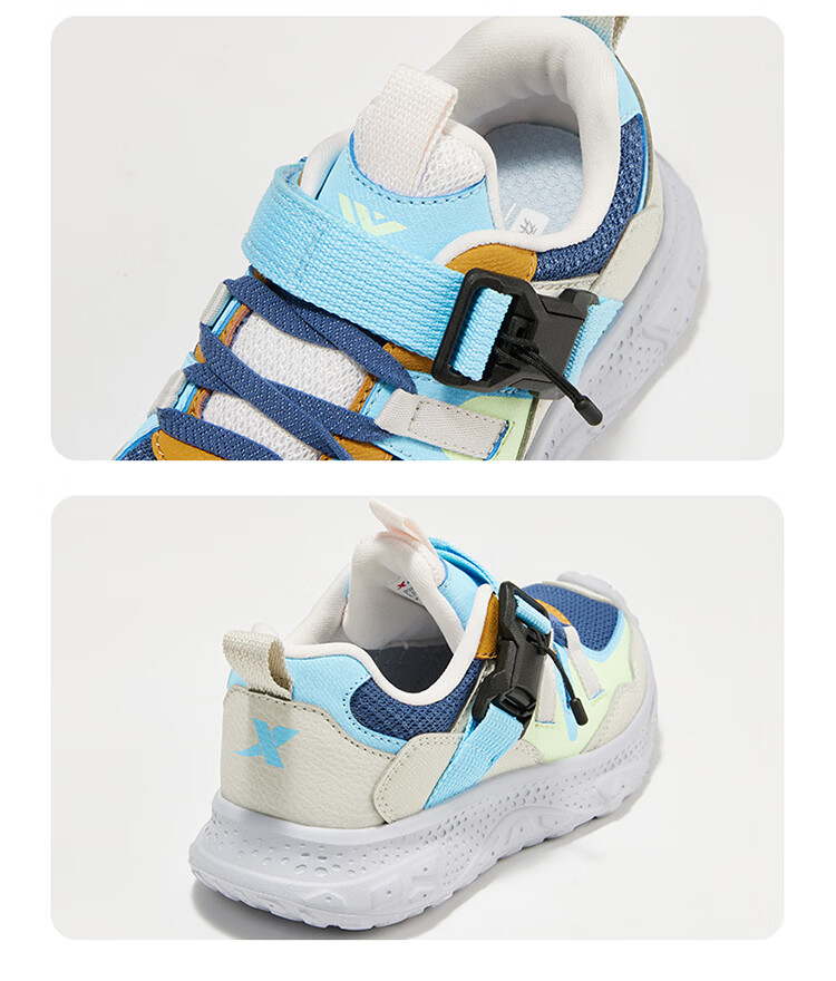 Xtep Children's Shoes Boys' Magnetic Buckle Design Casual Shoes Leather Mesh Sneakers Limestone/Cocoa Brown 27