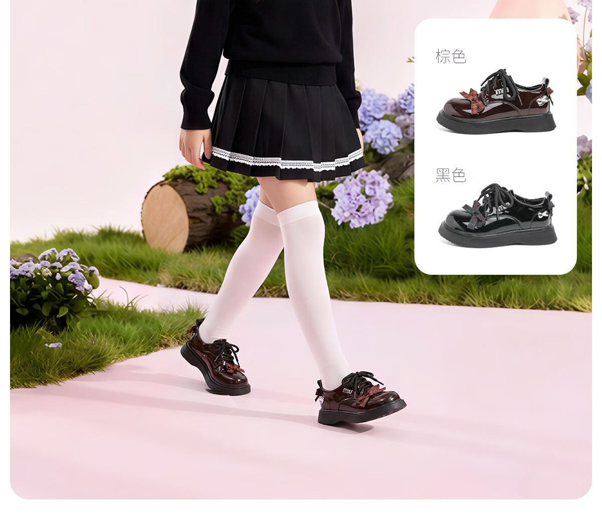 Tongmeng Sunny Children's Leather Shoes 2026 Spring New Girls Princess Shoes Black Loaf Shoes with Skirt Soft Sole Shoes