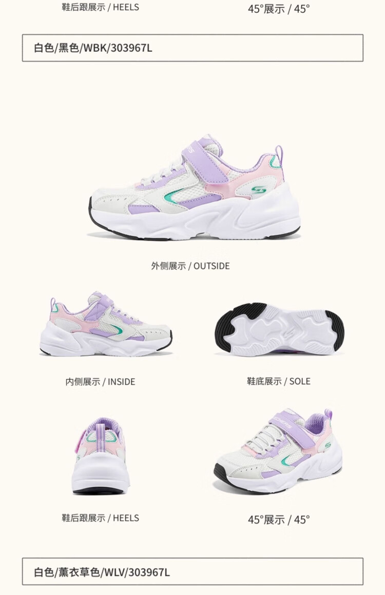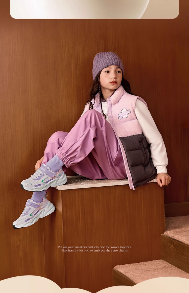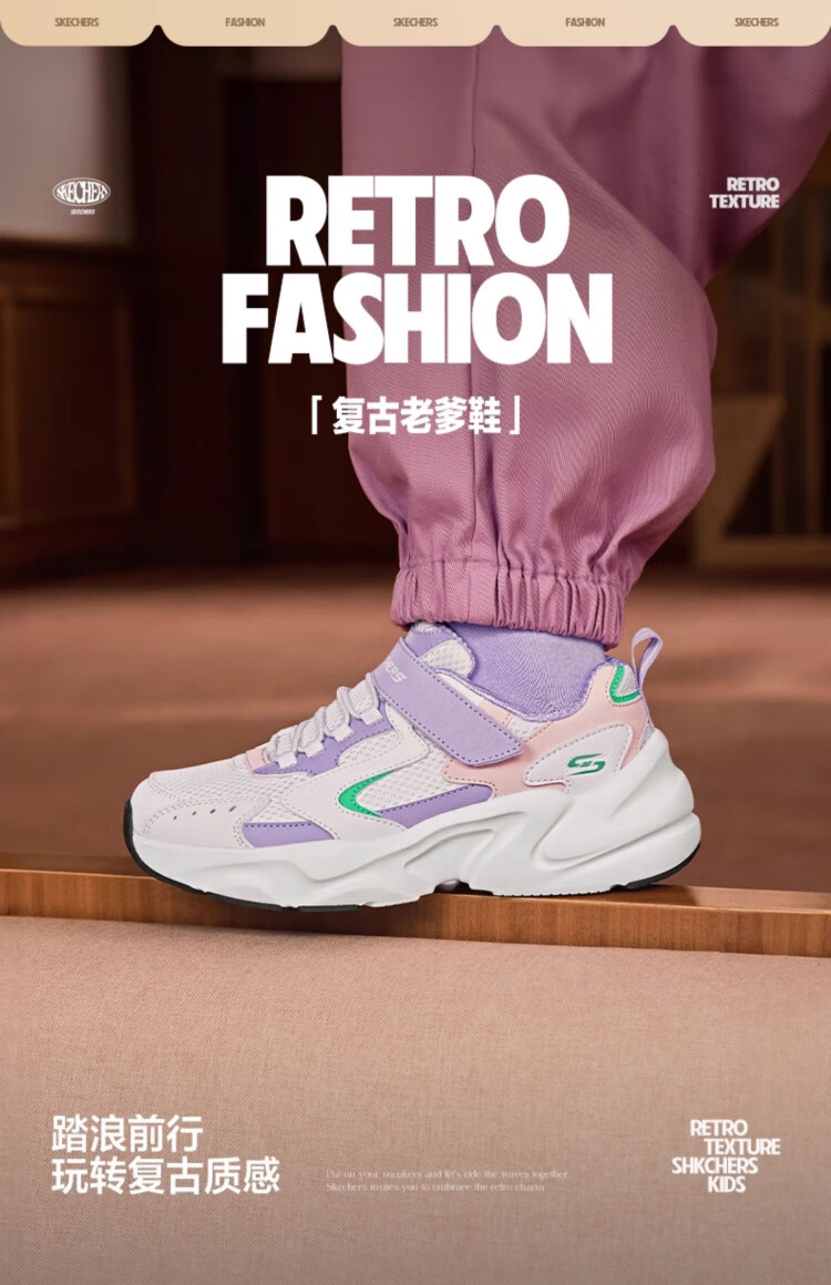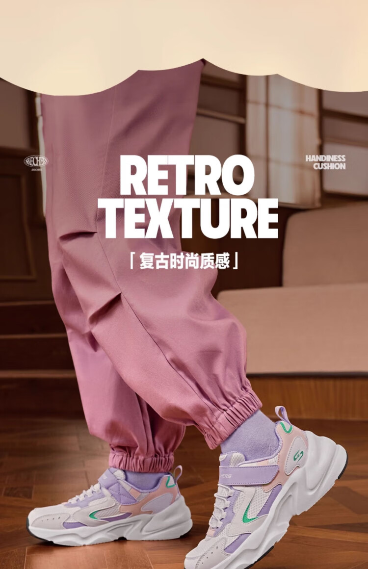 Skechers Skechers self-operated children's retro sports shoes girls autumn and winter new cushioning running shoes casual shoes 303967L