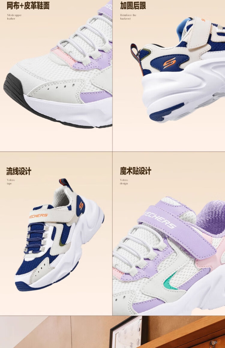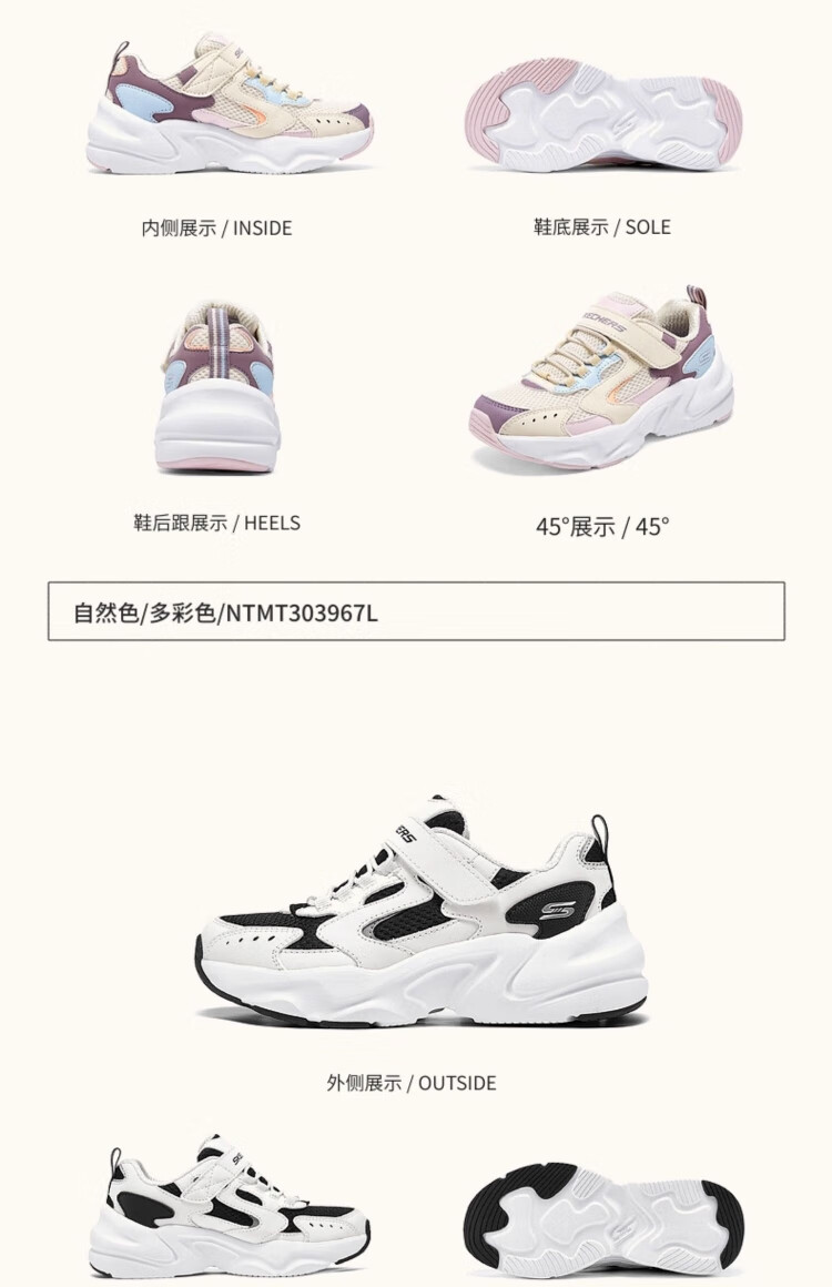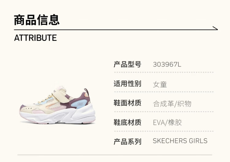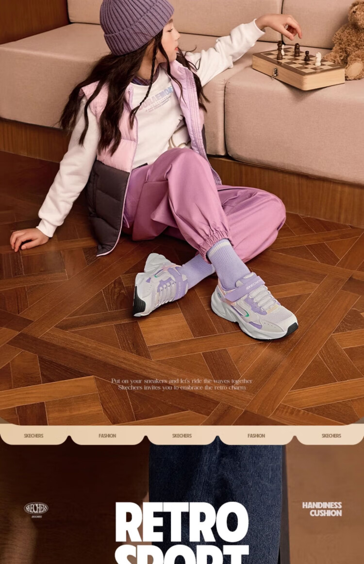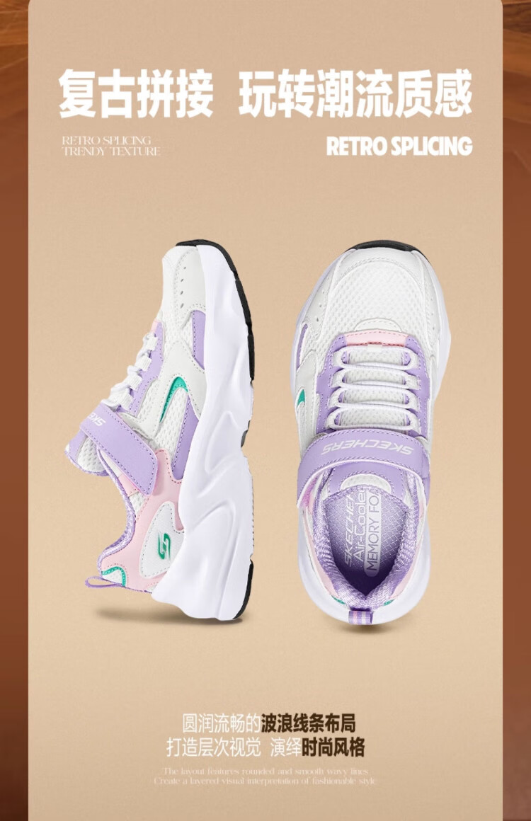 Skechers Skechers self-operated children's retro sports shoes girls autumn and winter new cushioning running shoes casual shoes 303967L