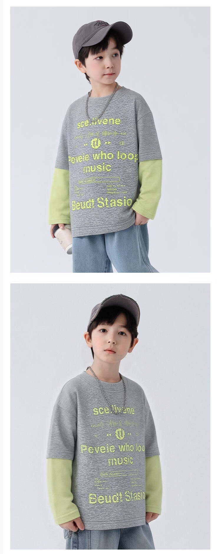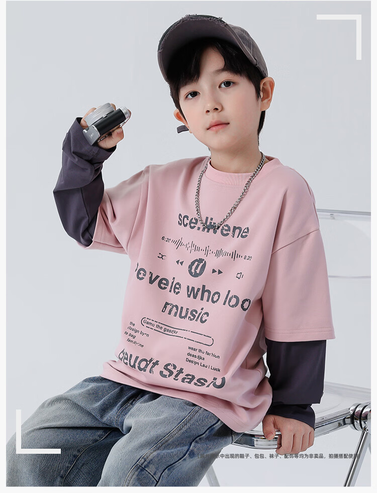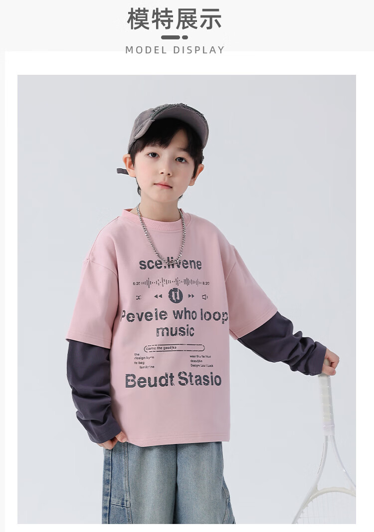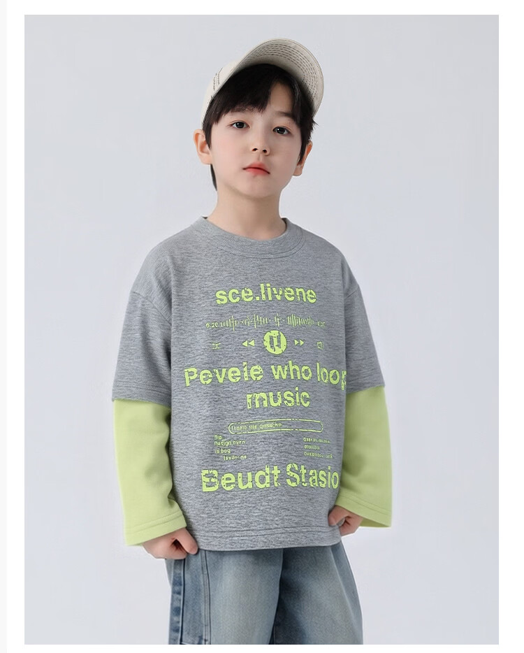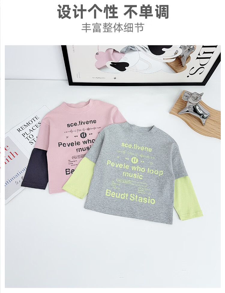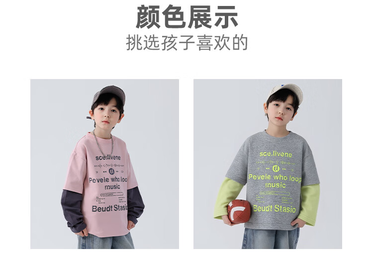 Yoyo Fairy Tale Spring and Autumn Children's Spliced Fake Two-piece Bottoming Shirt 2026 Boys Casual Western Style T-shirt Cotton Medium and Large Children's Trend