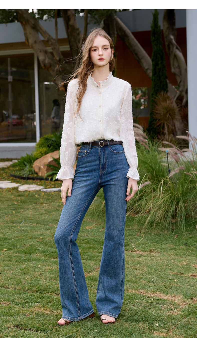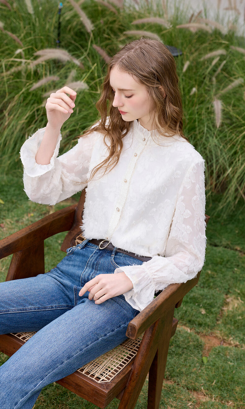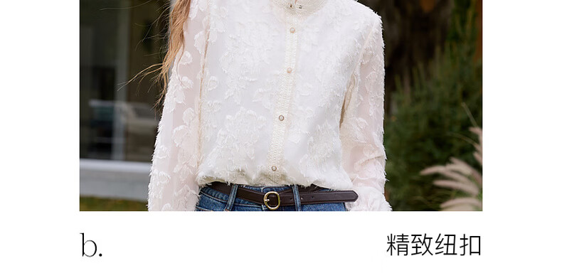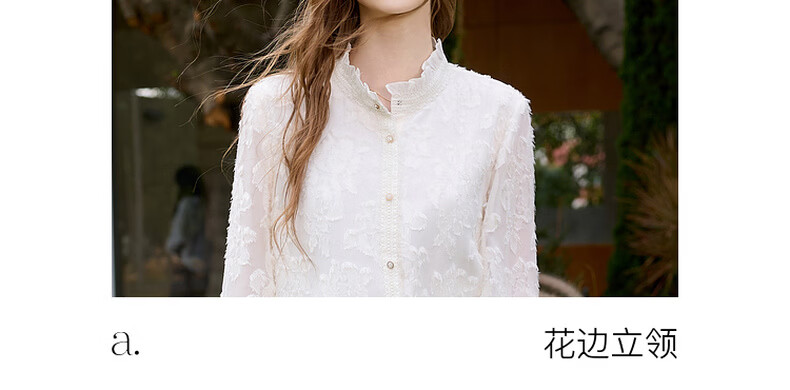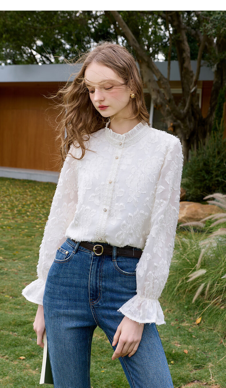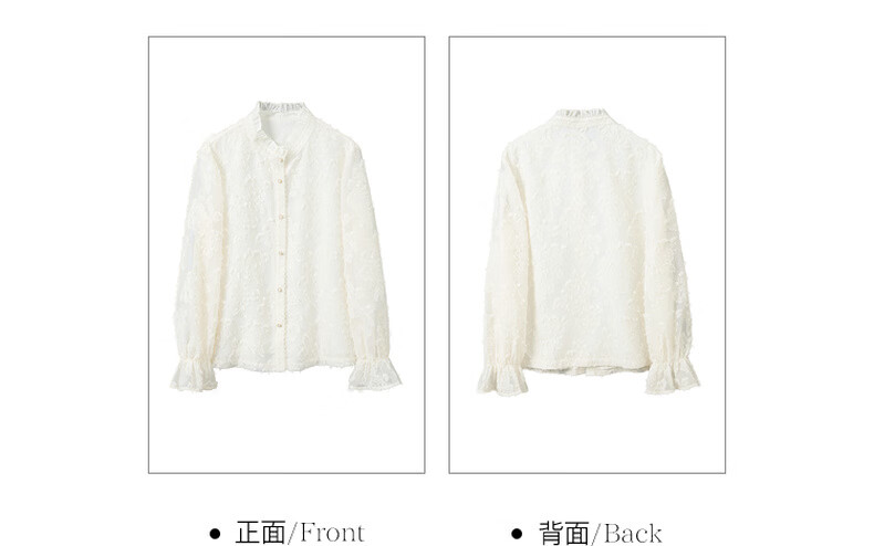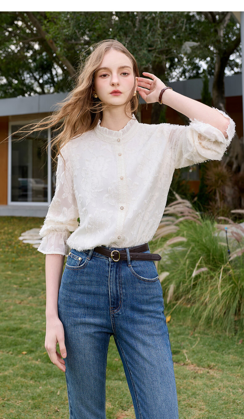 Sancai 2026 Spring New Cut Jacquard Loose Shirt Small Shirt Fungi Lace Stand Collar Shirt M