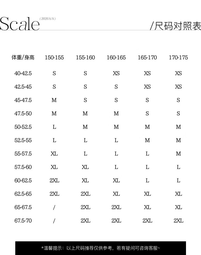 China (cm) 160-165/84-86 165-170 / 88-90 167-172 / 92-96 168-173 / 98-102 170-176 / 106-110