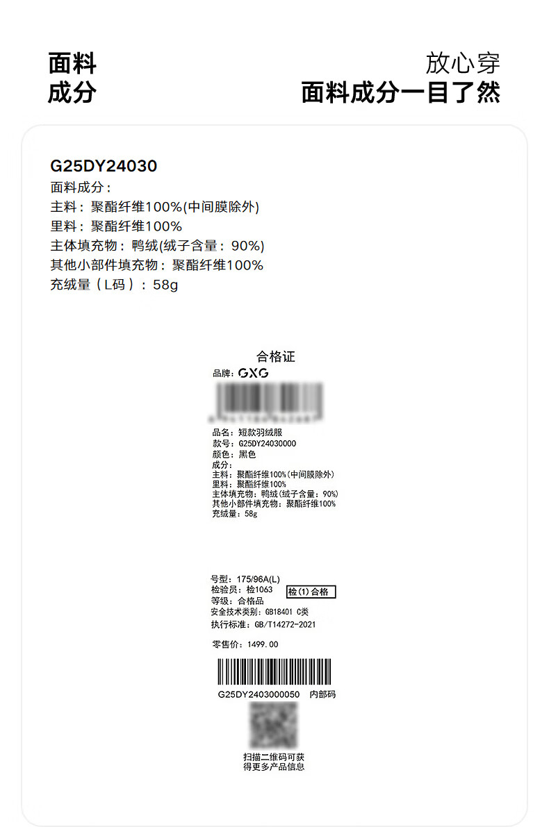 GXG men's three-proof two-color light and short down jacket for men black 175/L