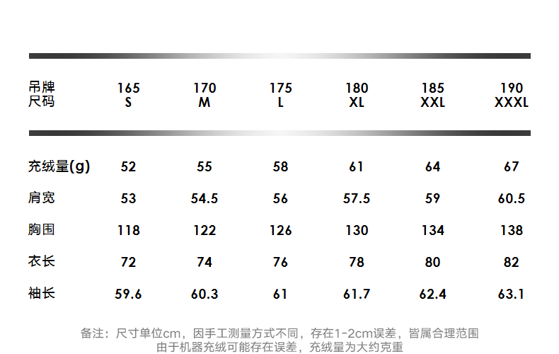 China (cm) 165 / 88-90 170 / 96-98 175 / 108-110 180 / 118-122 185 / 126-130