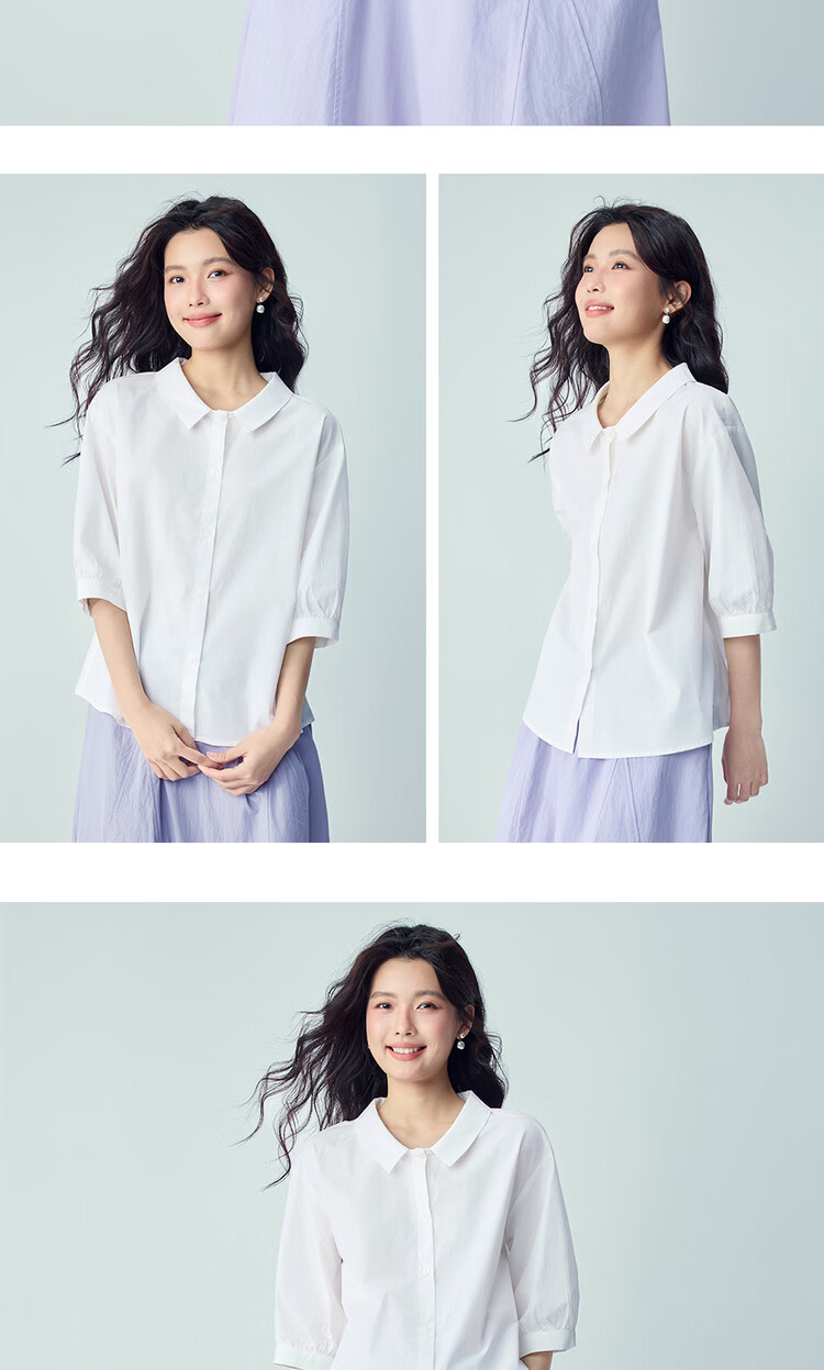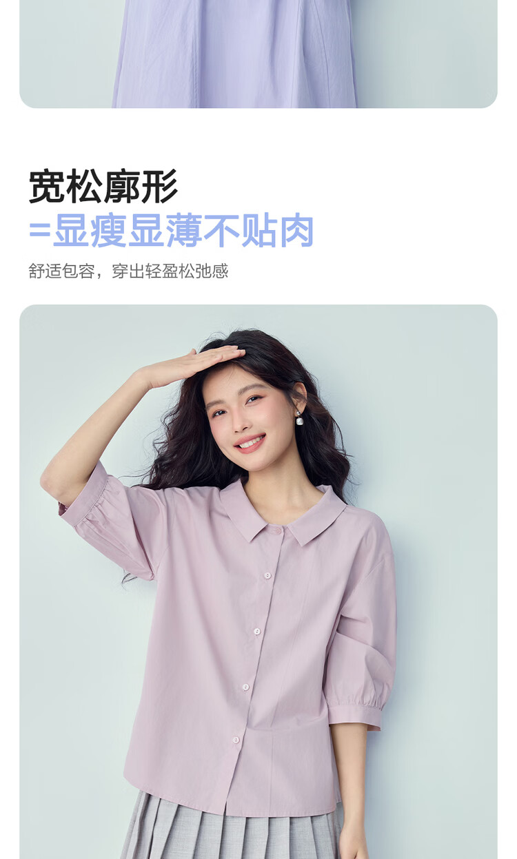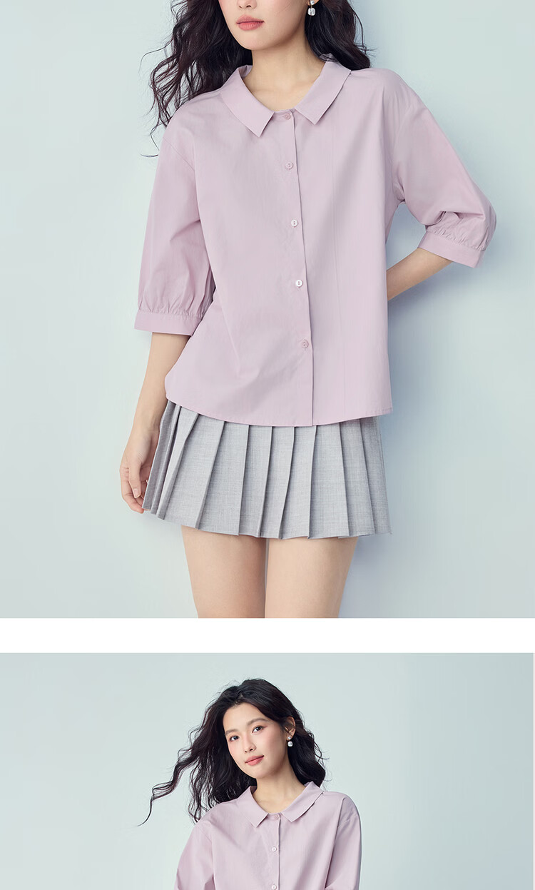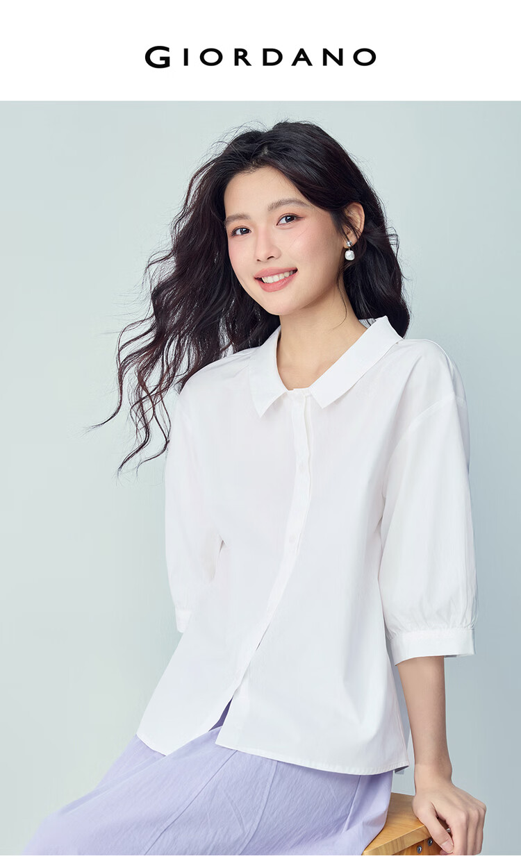 Giordano 2026 Sommer neuer Stil, hautfreundliche, atmungsaktive Baumwolle, lockeres, lässiges Revers-Mittelarm-Shirt für Damen 13346208