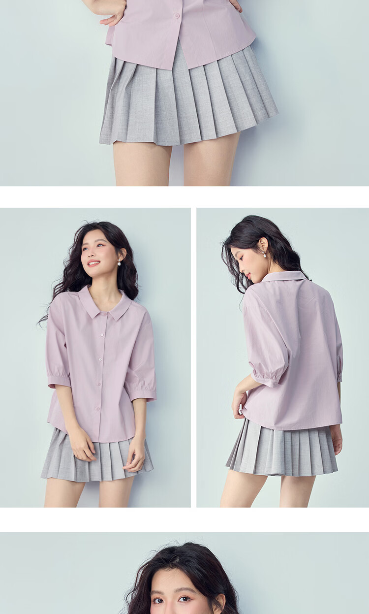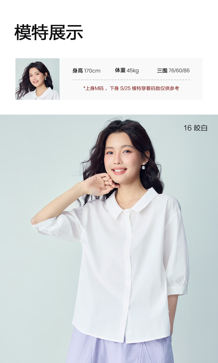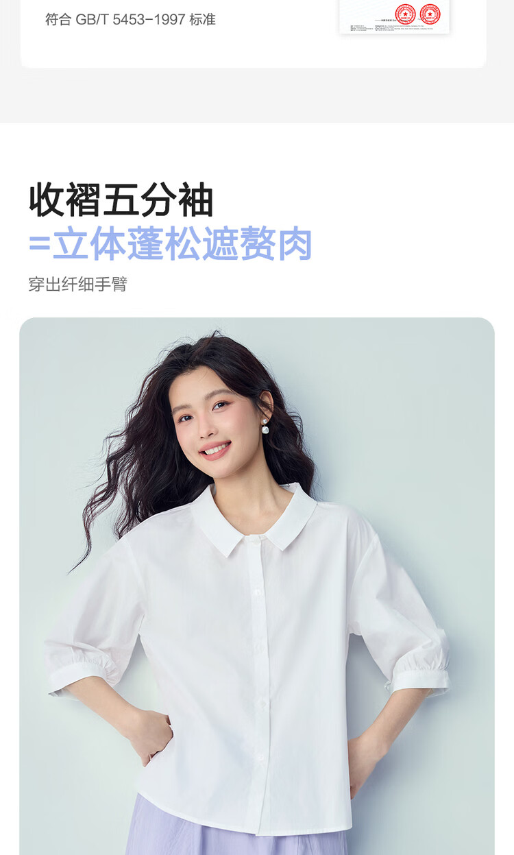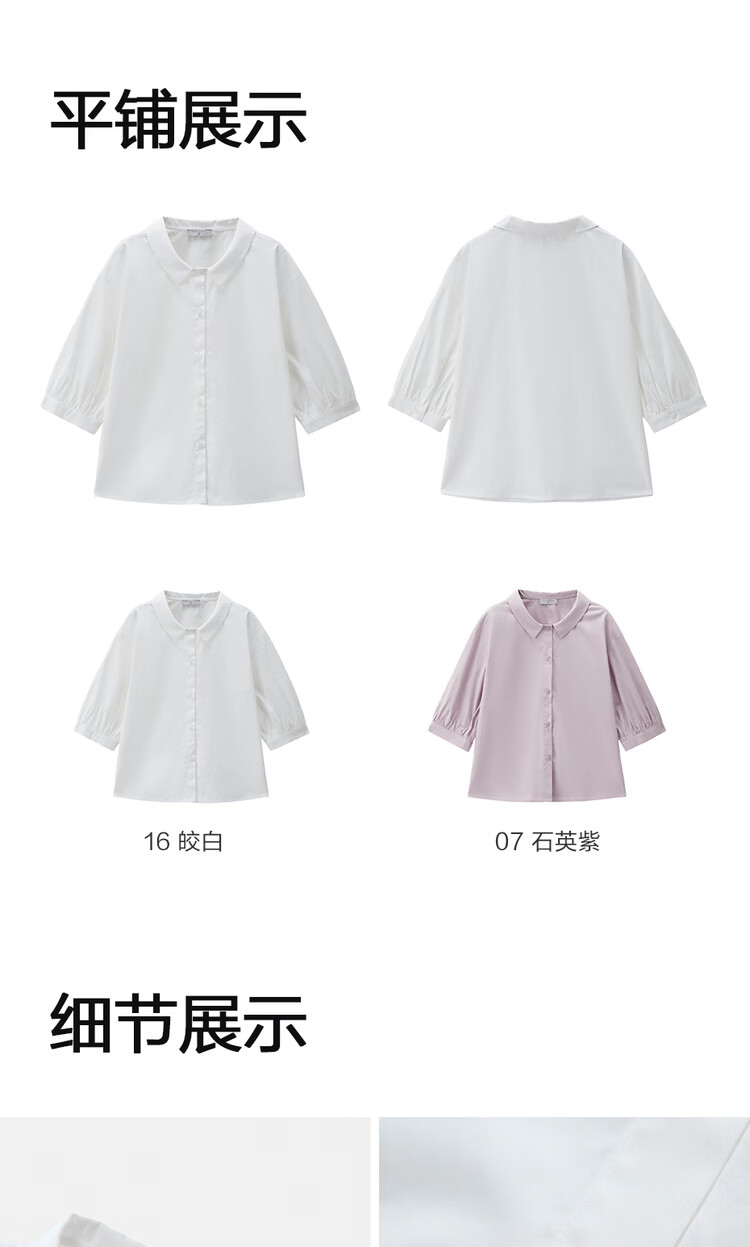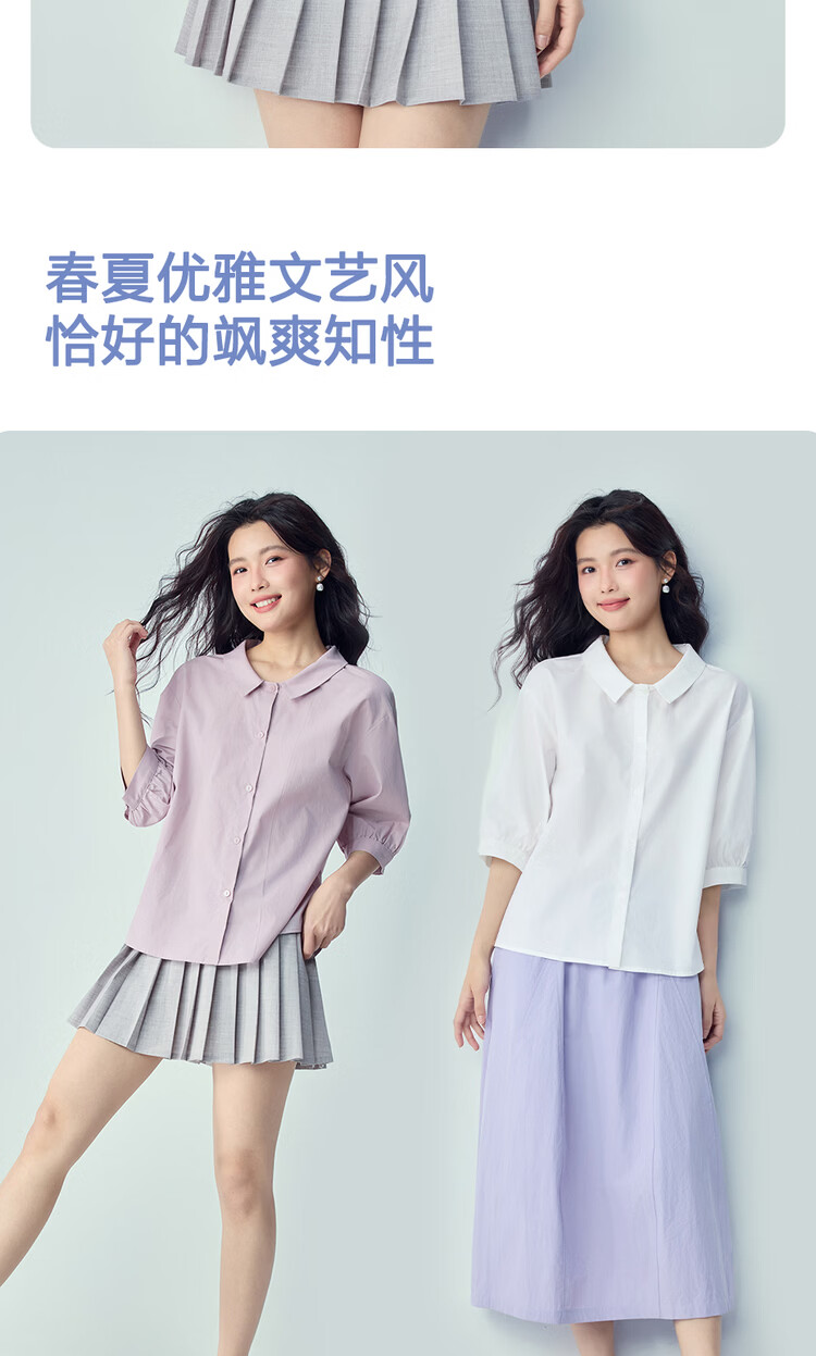 Giordano 2026 Sommer neuer Stil, hautfreundliche, atmungsaktive Baumwolle, lockeres, lässiges Revers-Mittelarm-Shirt für Damen 13346208