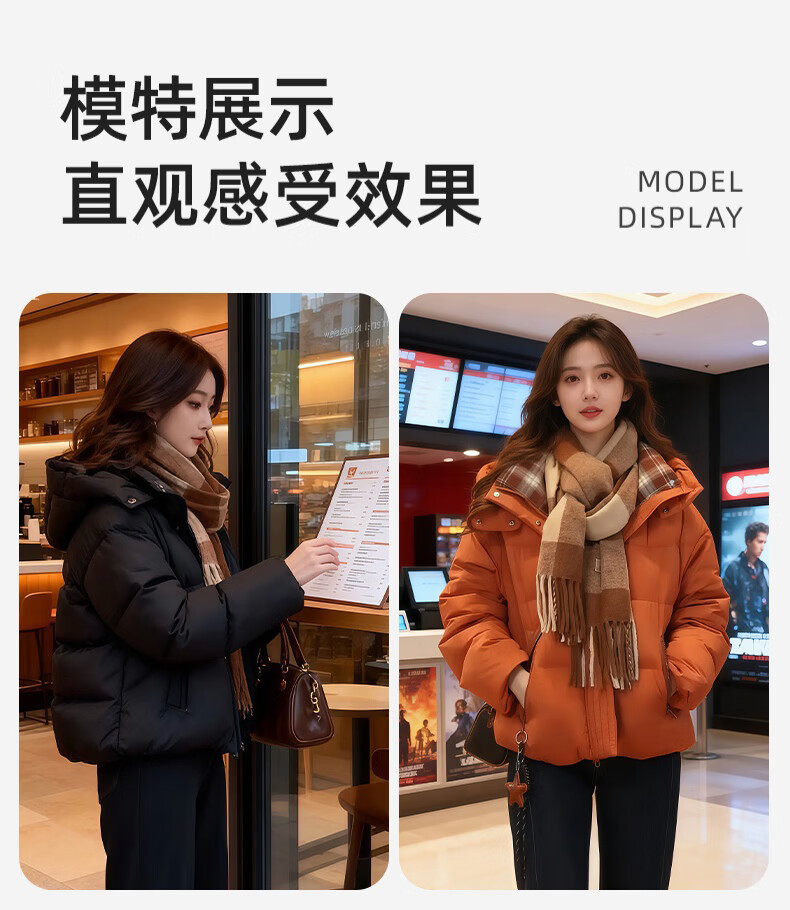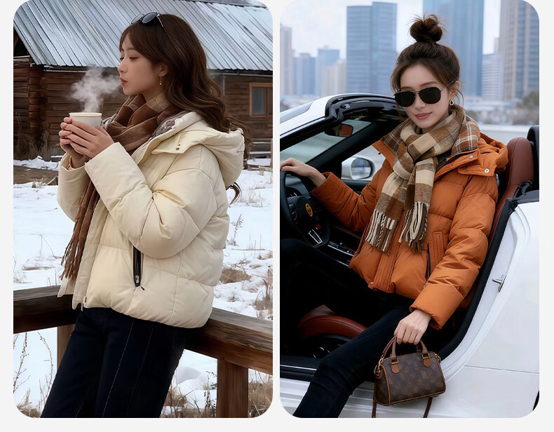 YAYA (YAYA) women's short down jacket 2025 winter new fashion retro plaid stitching warm thick bread jacket