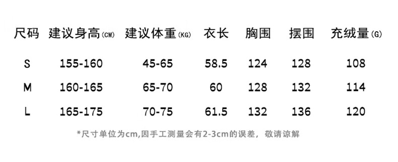 China (cm) 165 / 88-90 170 / 96-98 175 / 108-110 180 / 118-122 185 / 126-130