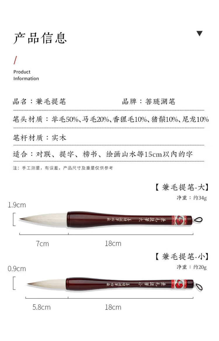 Shanlianhu Bibi-Pinsel, extra groß, Segenscharakter, Wolfshaar und Schafshaar, Frühlingspaare, großer Zeichenstift, Hebestift, Kalligraphie-Übung, Kalligraphie-Übungspinsel und Haarbürste, groß (außen 7 cm)