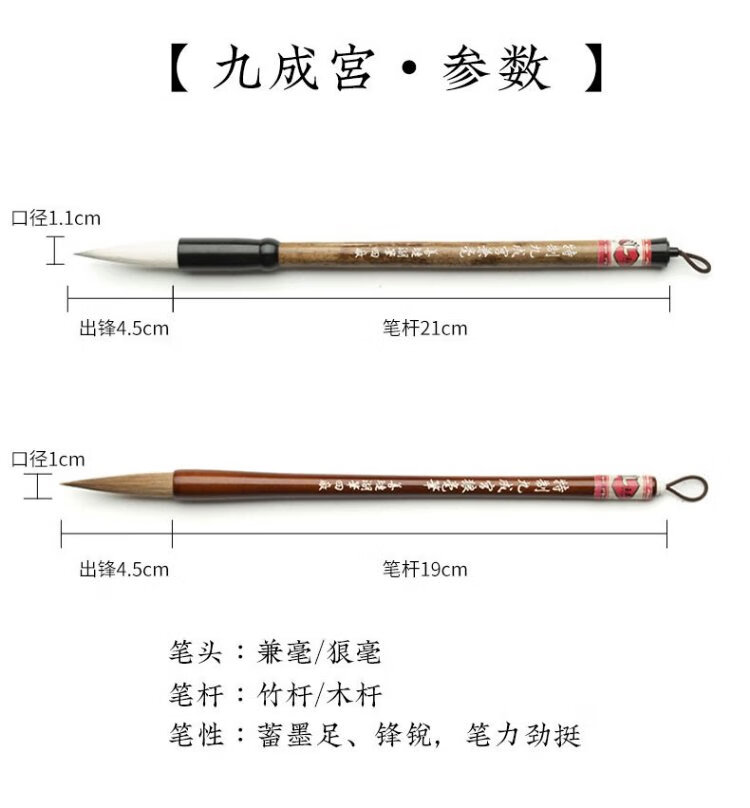 善琏湖笔狼毫毛笔兼毫中楷毛笔行草楷隶篆书法国画初学者文房四宝套装 九成宫狼毫  出锋4.5cm