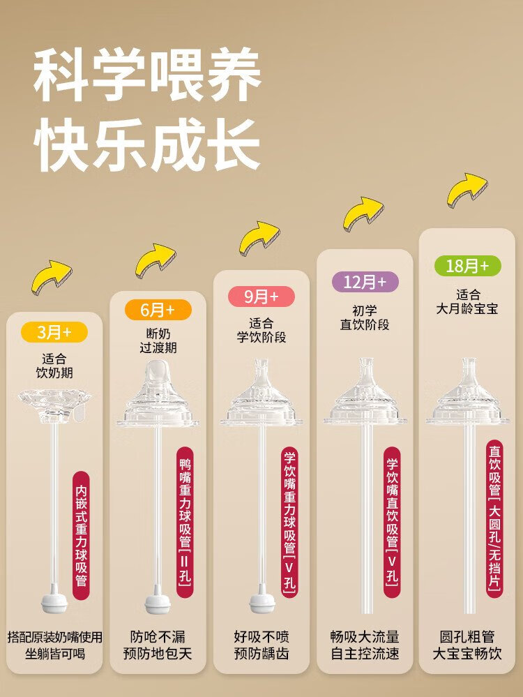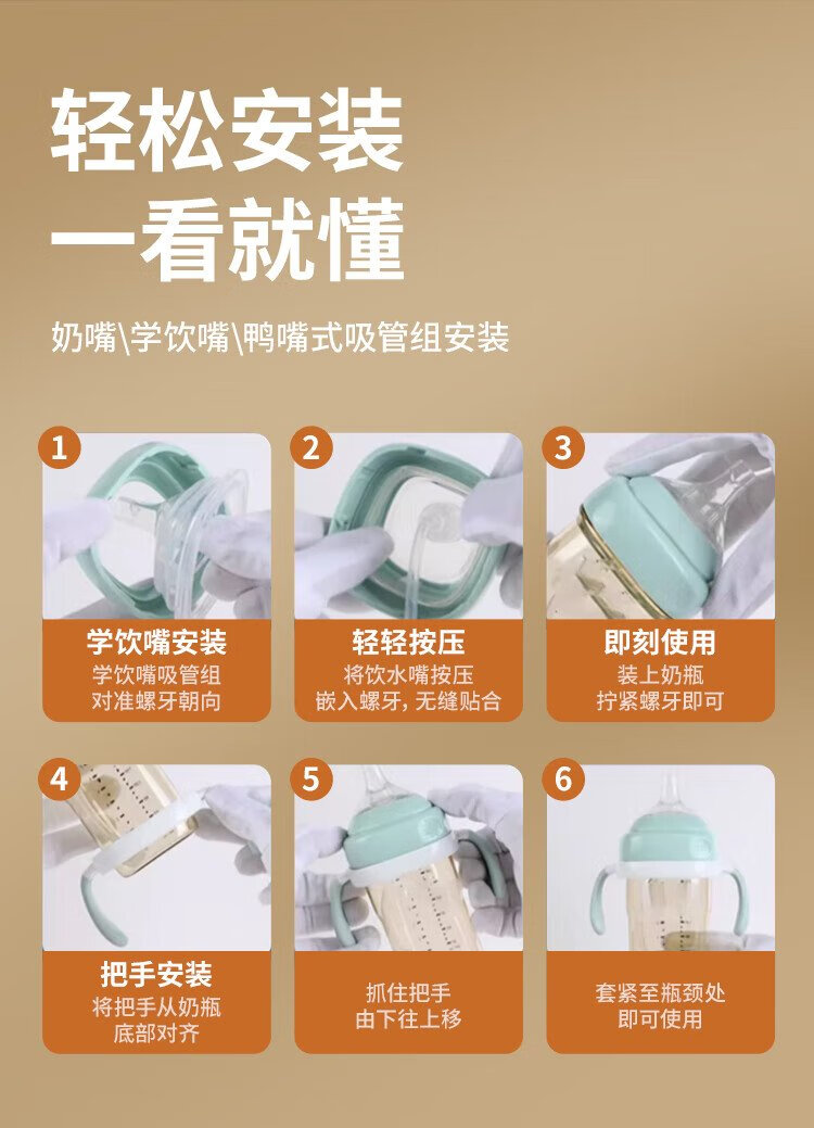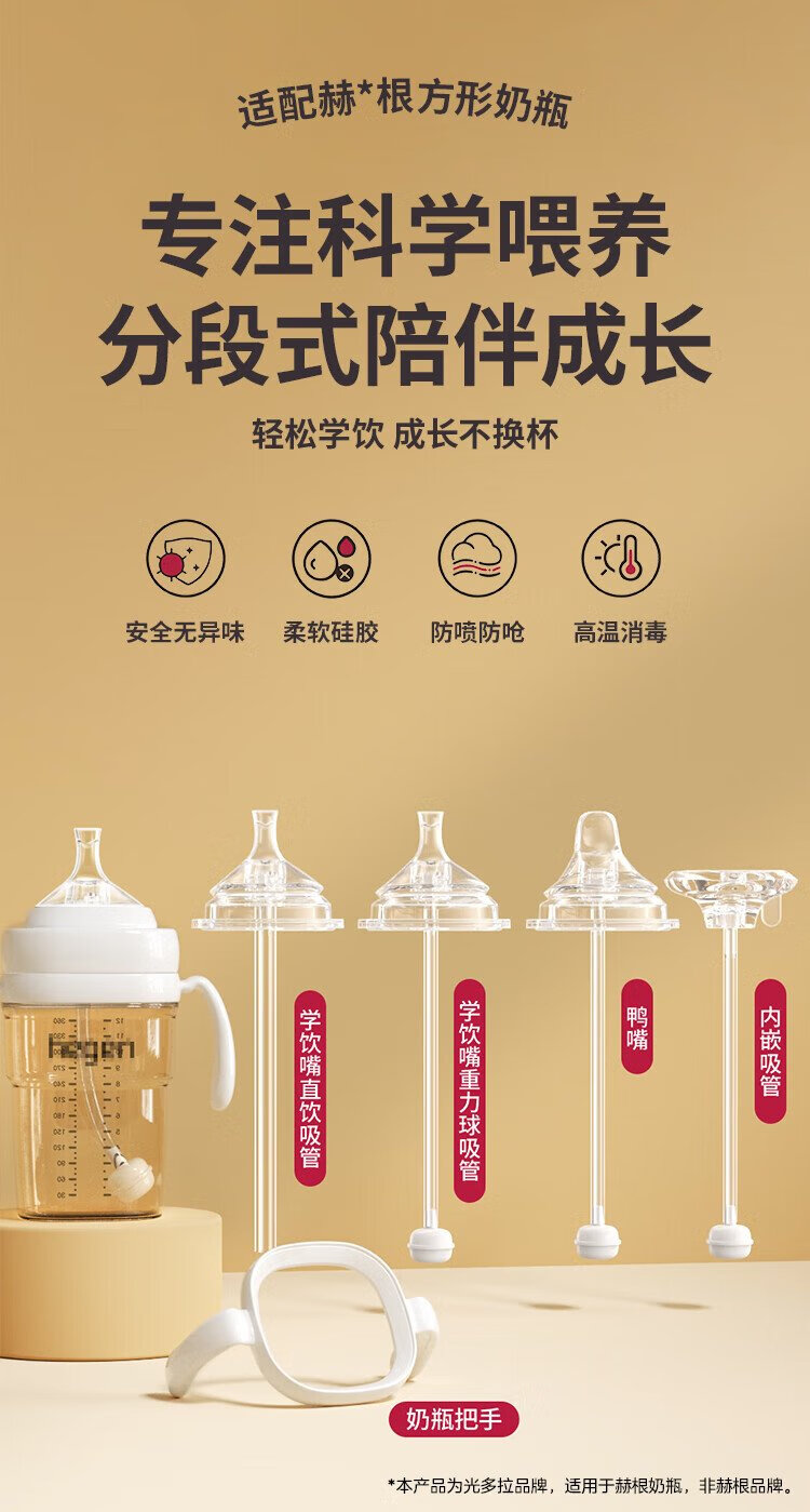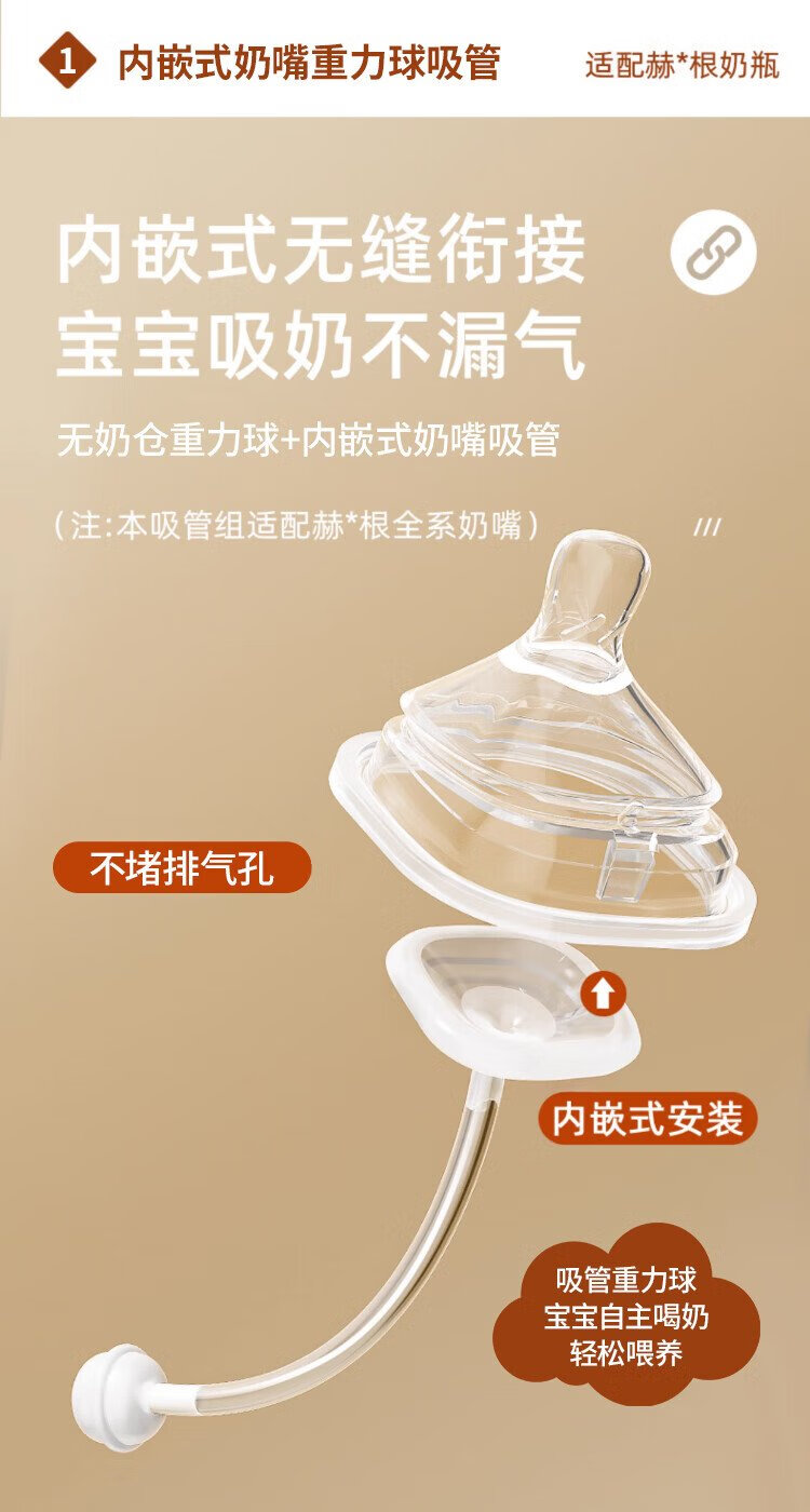Guangdola Square Milk Bottle Gravity Ball Nipple with Embedded Straw (Applicable to Hegen Milk Bottle Accessories)