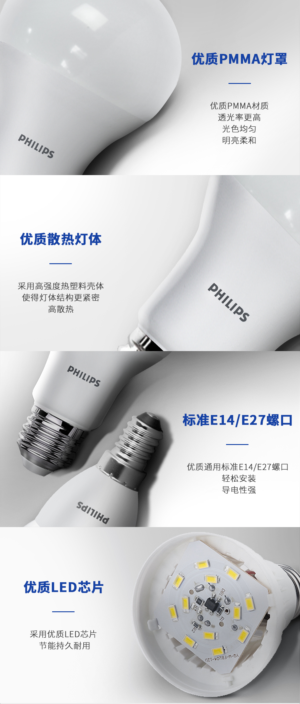 Philips (PHILIPS) LED bulb E27 large screw socket energy-saving lamp oversized bulb replacement incandescent bulb super bright light source economical bulb 13W white light 6500K