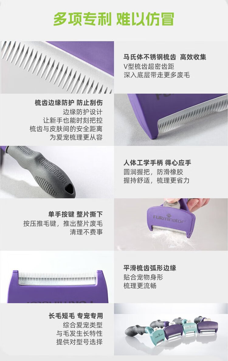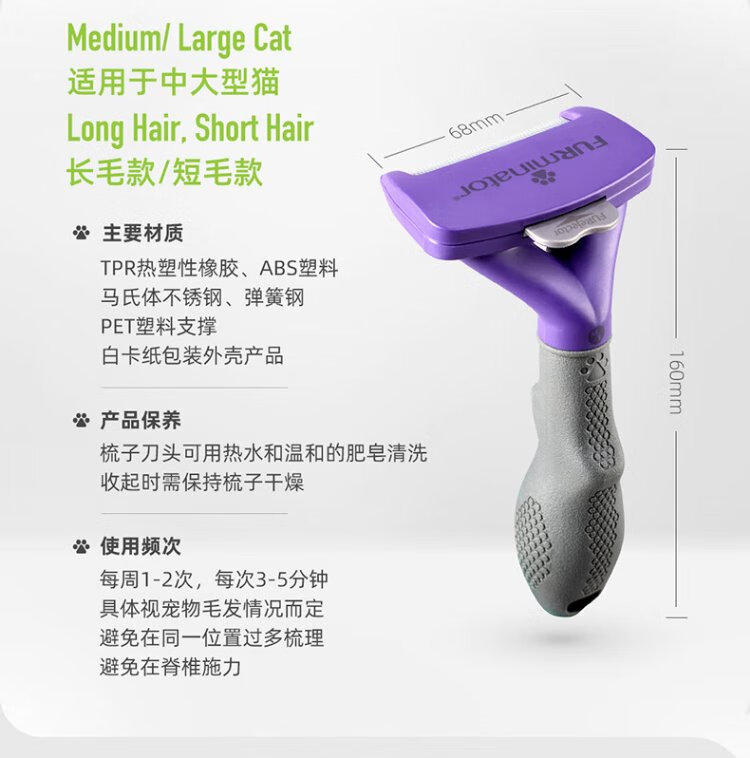 FURminator cat comb to remove floating hair, under-fur comb, knot-opening comb, cat hair comb, American short-haired British short-haired Siamese short-haired cat large size