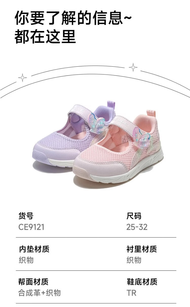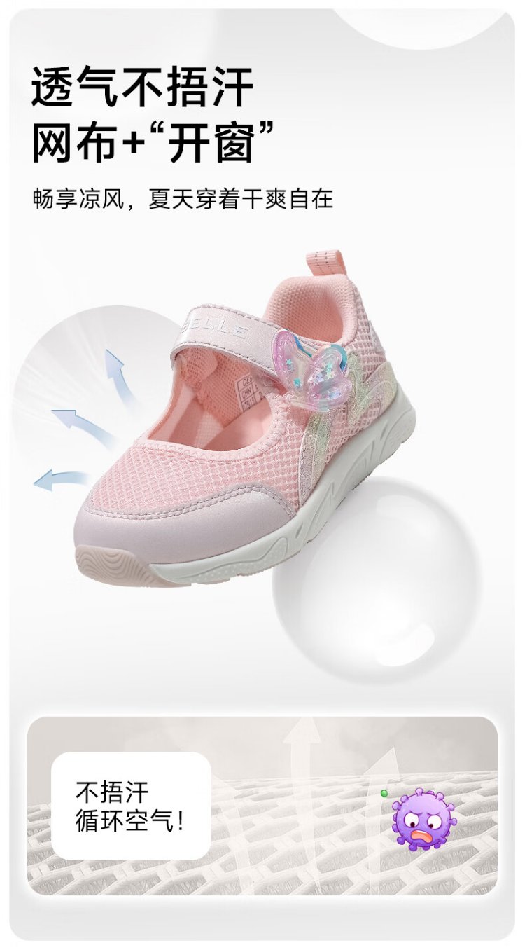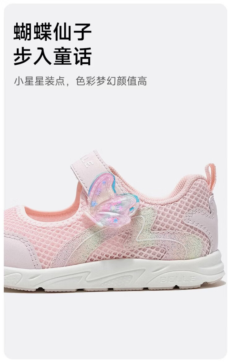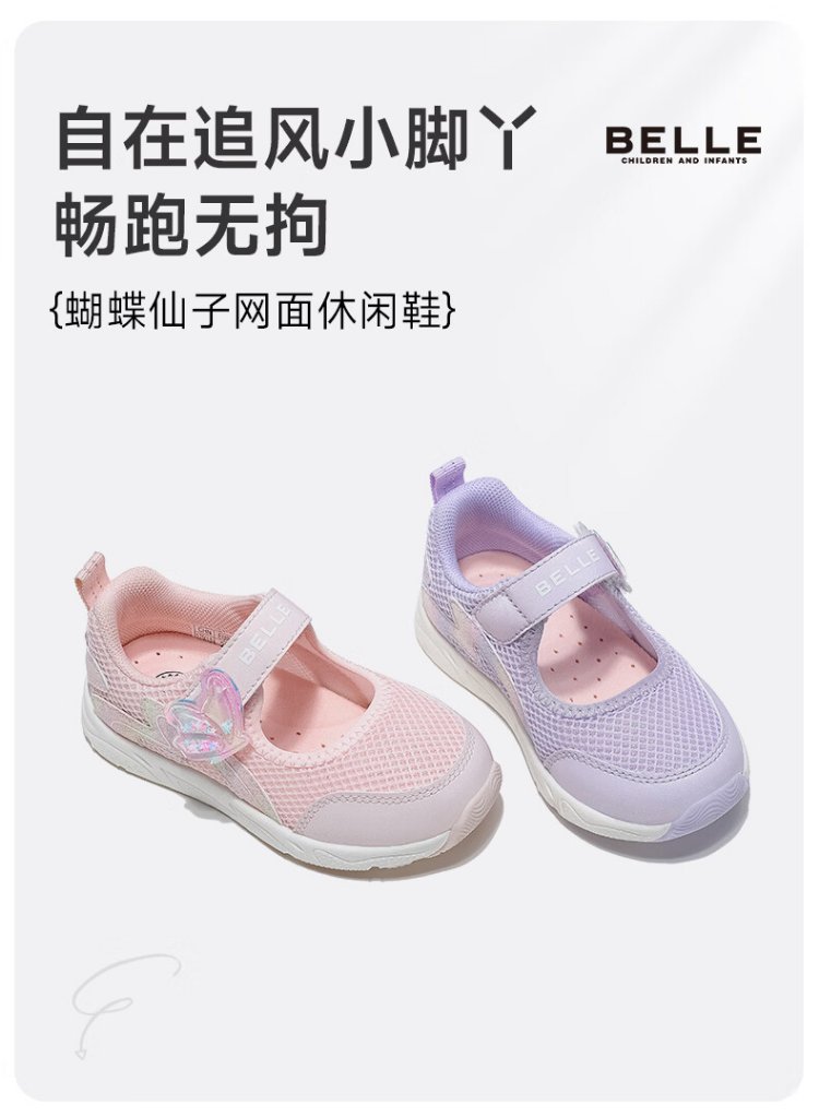 Belle Children's Shoes 2026 Spring New Girls' Sports Shoes Butterfly Mesh Shoes Lightweight Breathable Casual Children's Shoes Purple 25