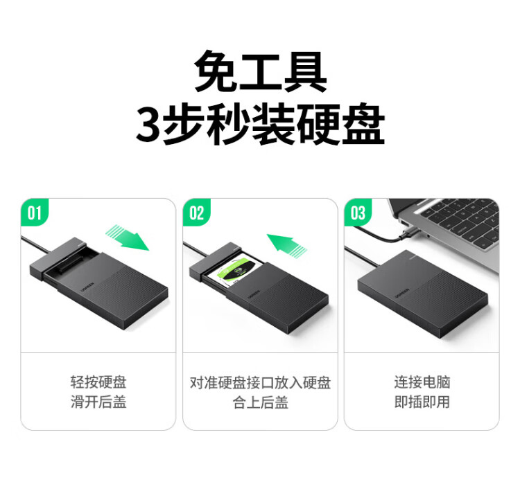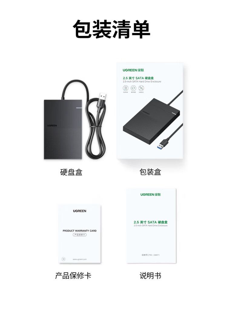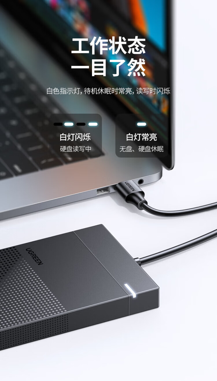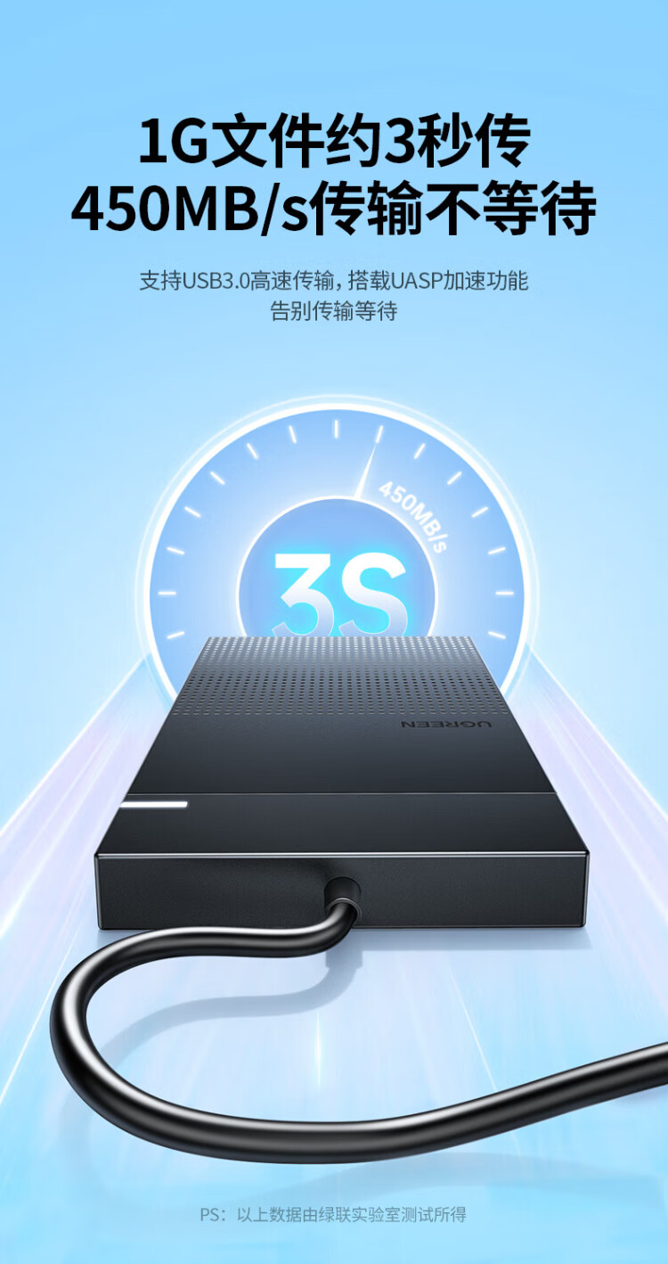 绿联Type-C3.0移动硬盘盒2.5英寸 USB3.0适用SATA串口笔记本台式外置固态机械SSD硬盘带线款 USB3.0【收线款】