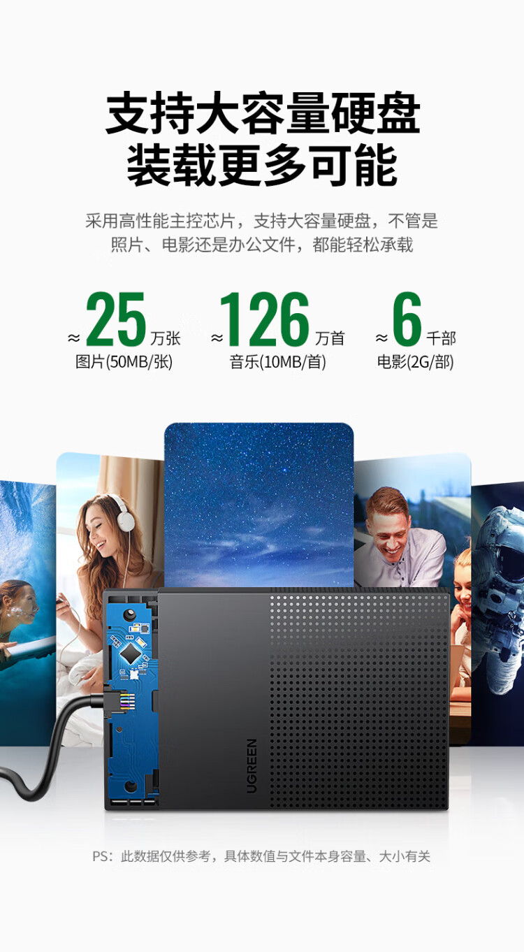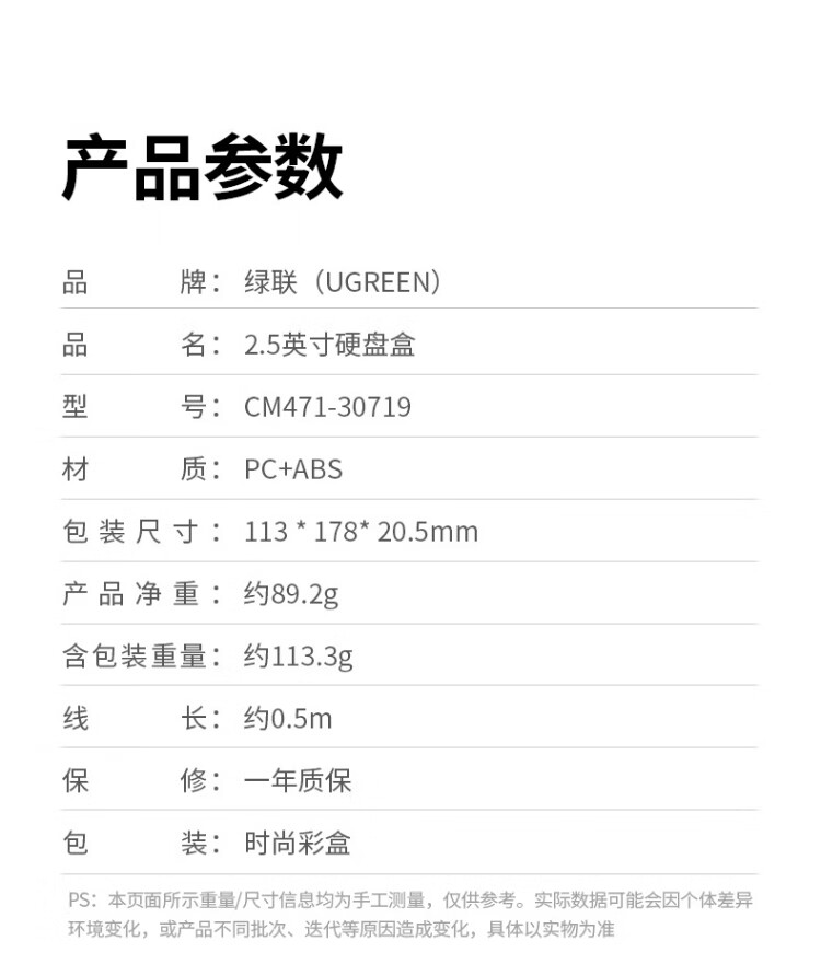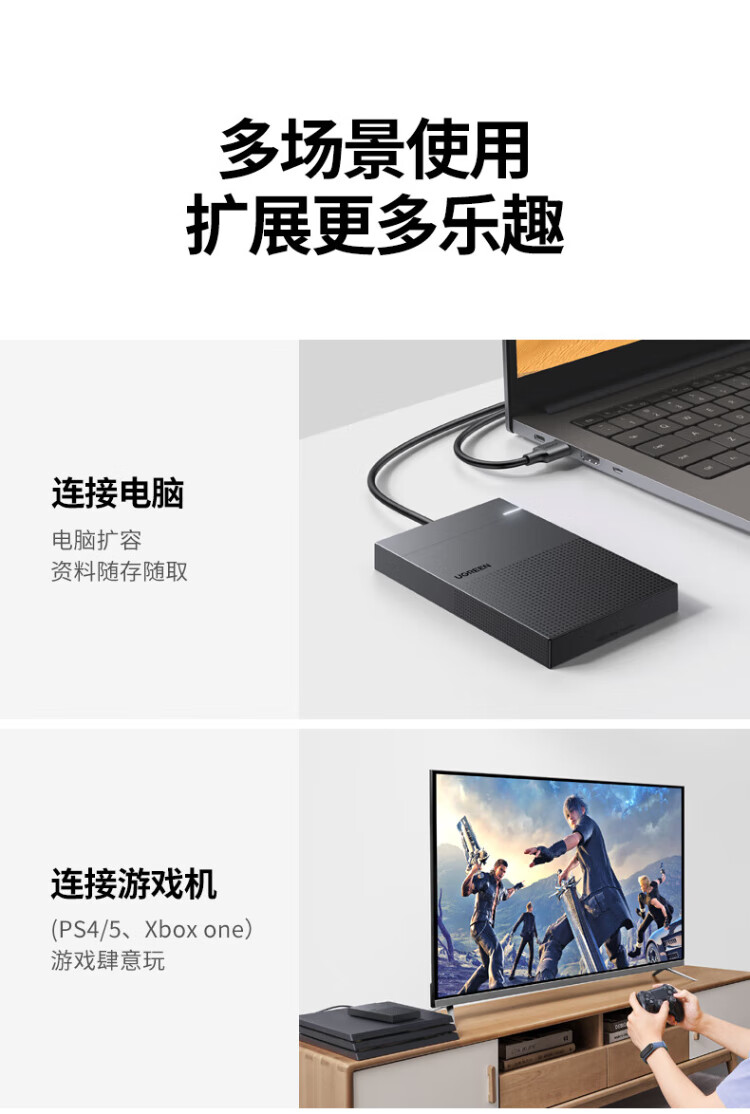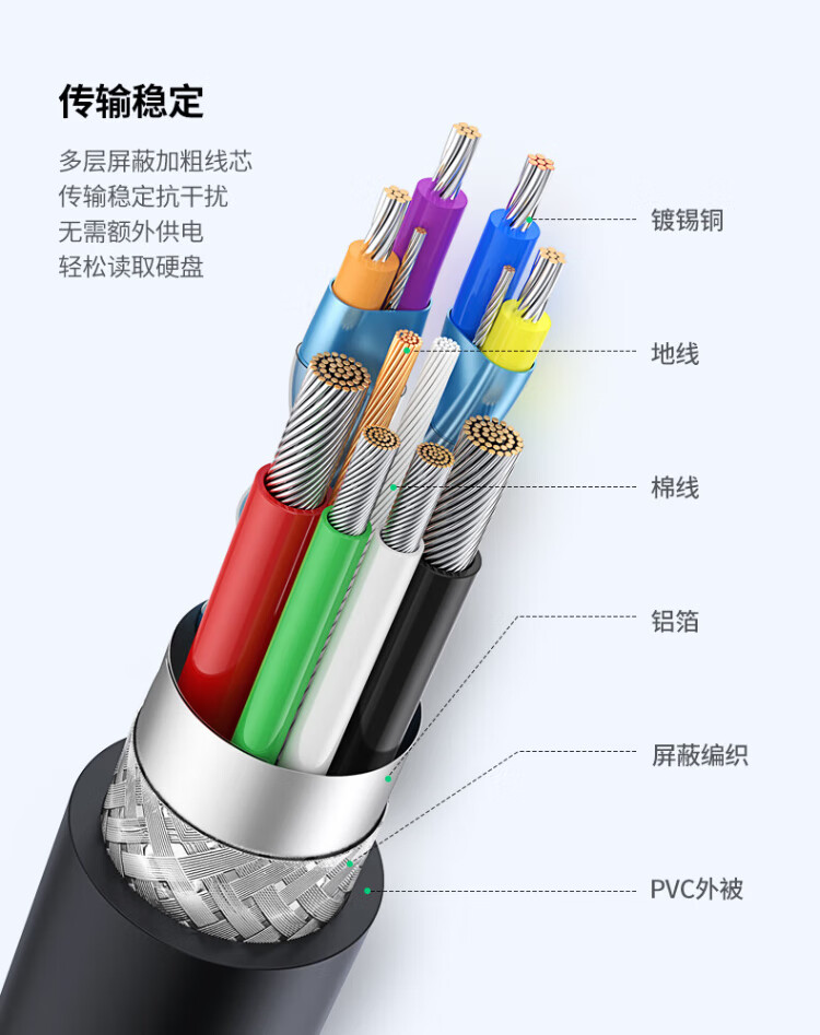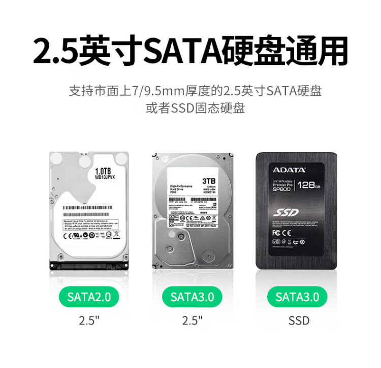 绿联Type-C3.0移动硬盘盒2.5英寸 USB3.0适用SATA串口笔记本台式外置固态机械SSD硬盘带线款 USB3.0【收线款】