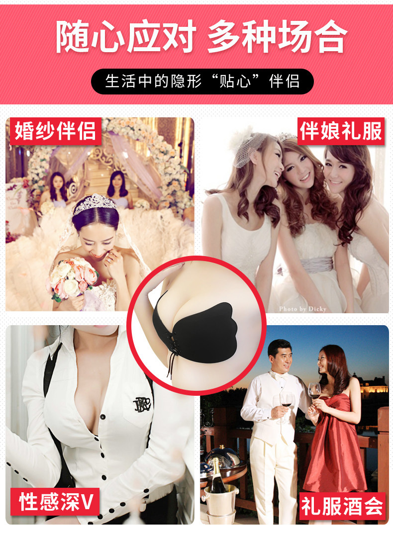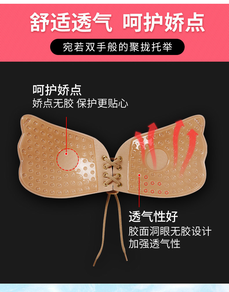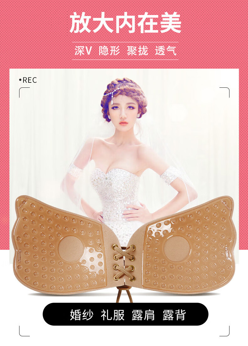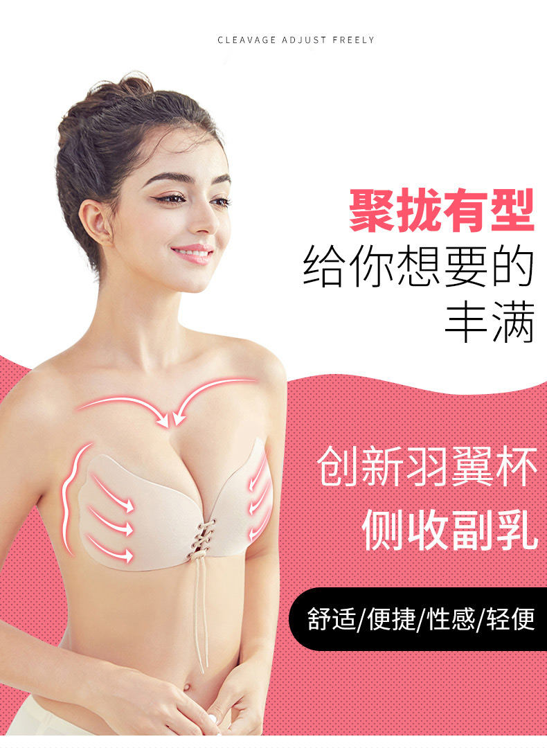 Wenying Invisible Bra Paste Push-up and Pull-Up Wedding Dress Strapless Underwear Women's Anti-Slip Breathable Silicone Paste 1 Piece Skin Color C/D Cup