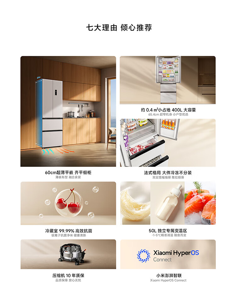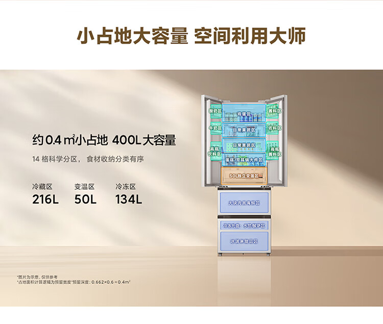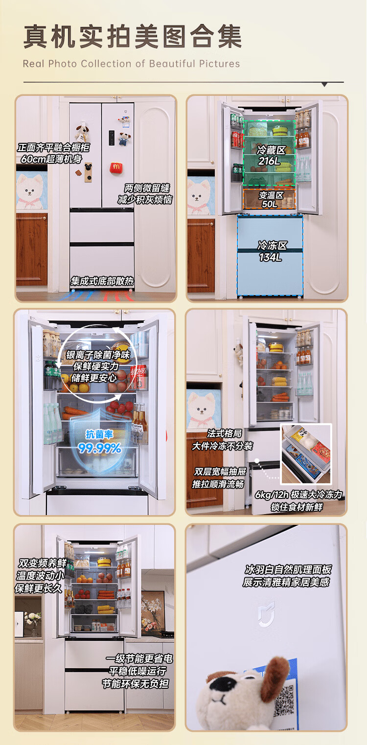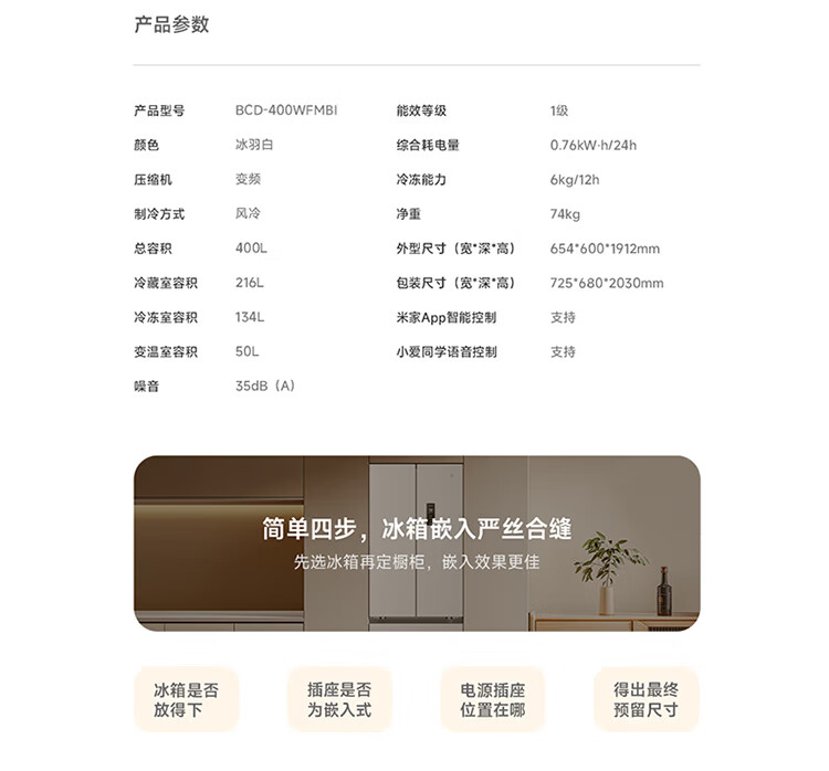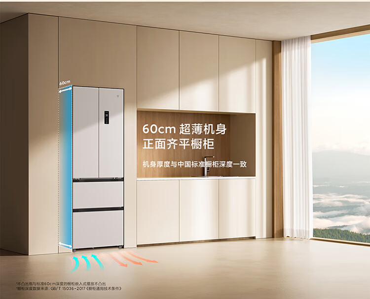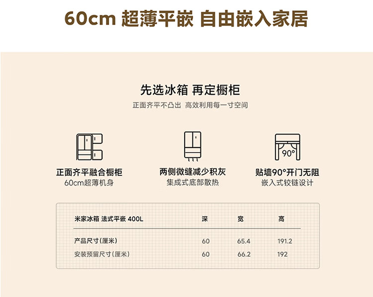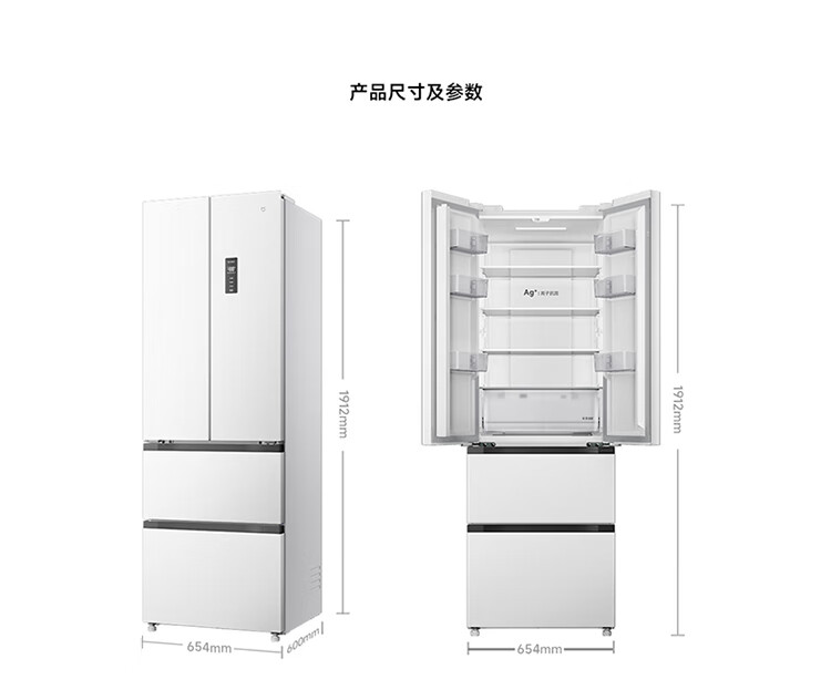 Mijia Xiaomi 400L French multi-door household first-class variable frequency 60cm ultra-thin flat-mounted small-family refrigerator trade-in official genuine BCD-400WFMBI