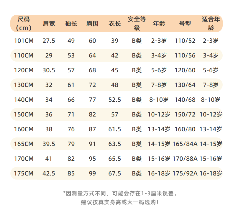 China (cm) 160-165/84-86 165-170 / 88-90 167-172 / 92-96 168-173 / 98-102 170-176 / 106-110
