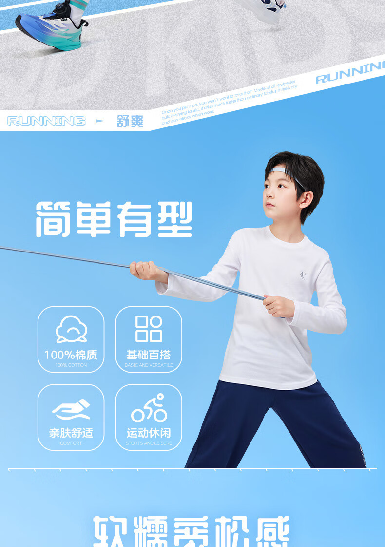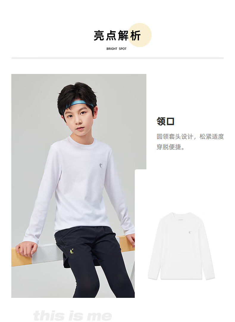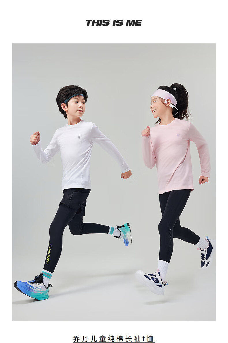 Jordan boys and girls universal long-sleeved T-shirt spring and autumn children's pure cotton long T round neck children's clothing white 150