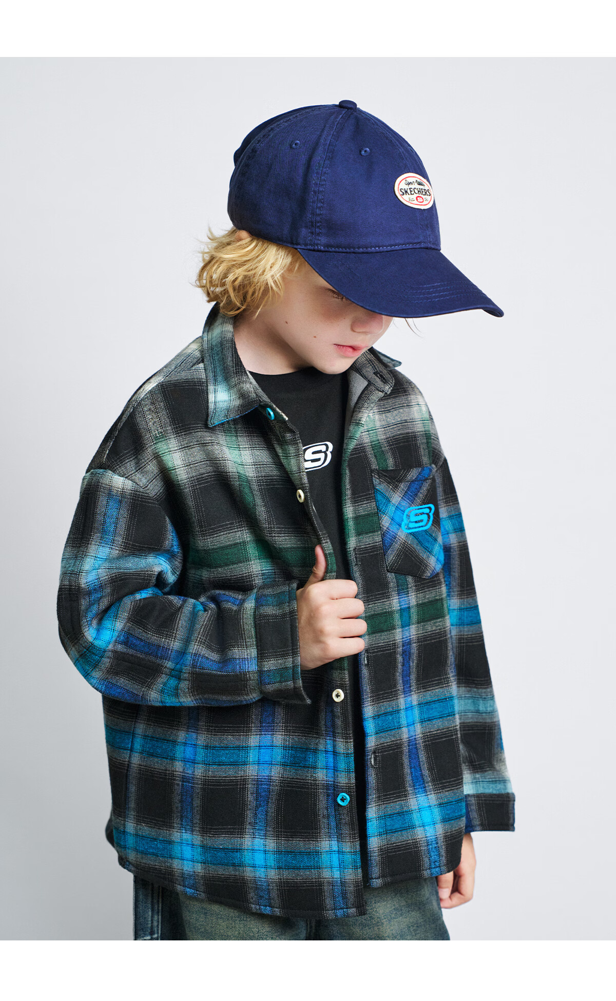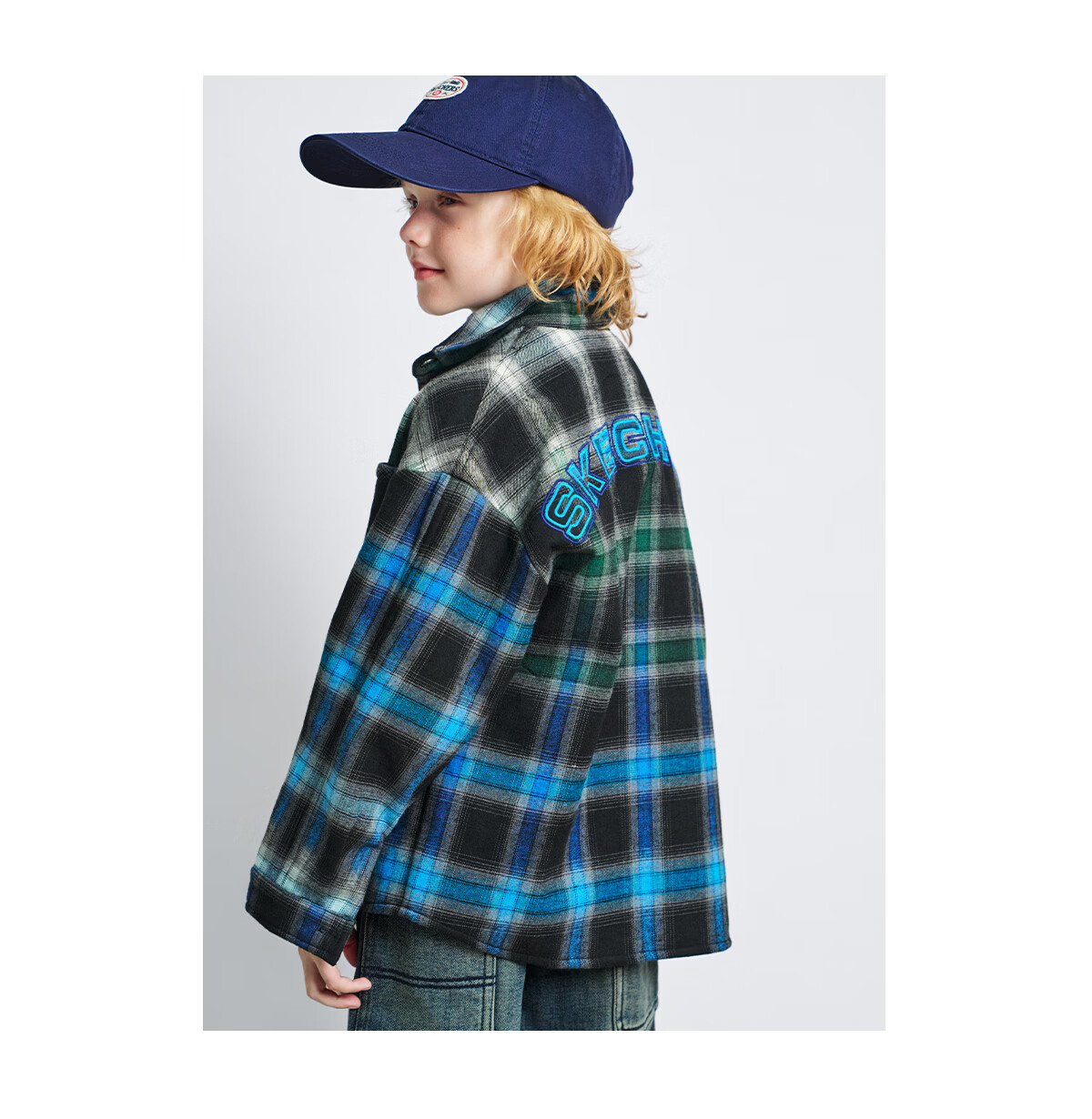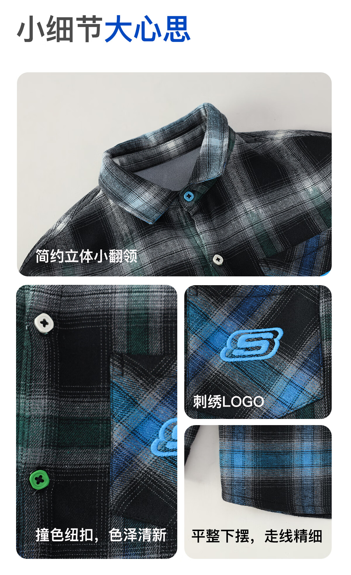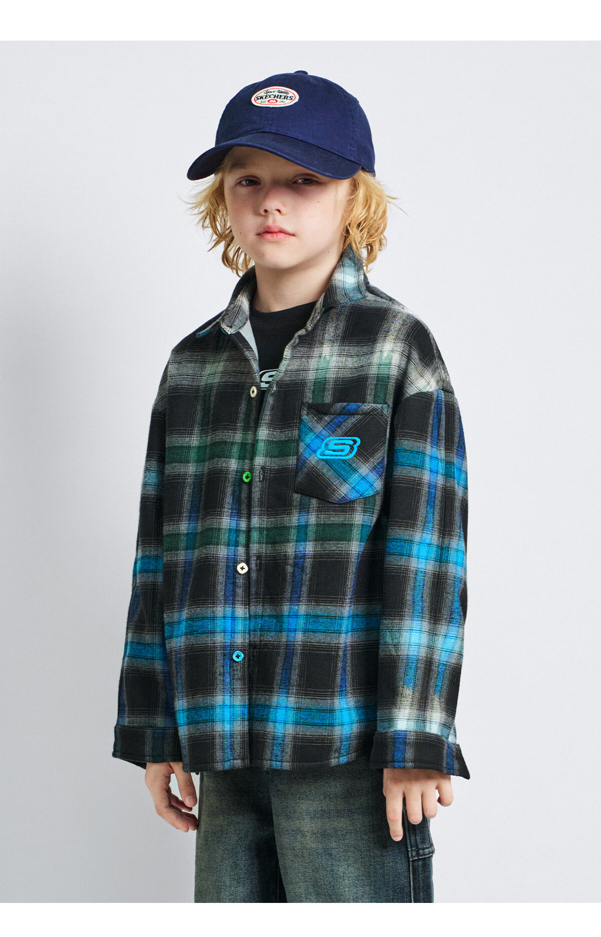 Skechers children's clothing boys' shirt winter style plaid top for middle and large children, lake blue 130