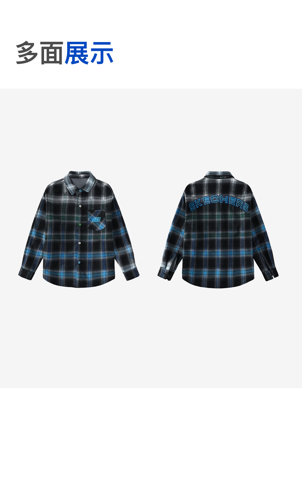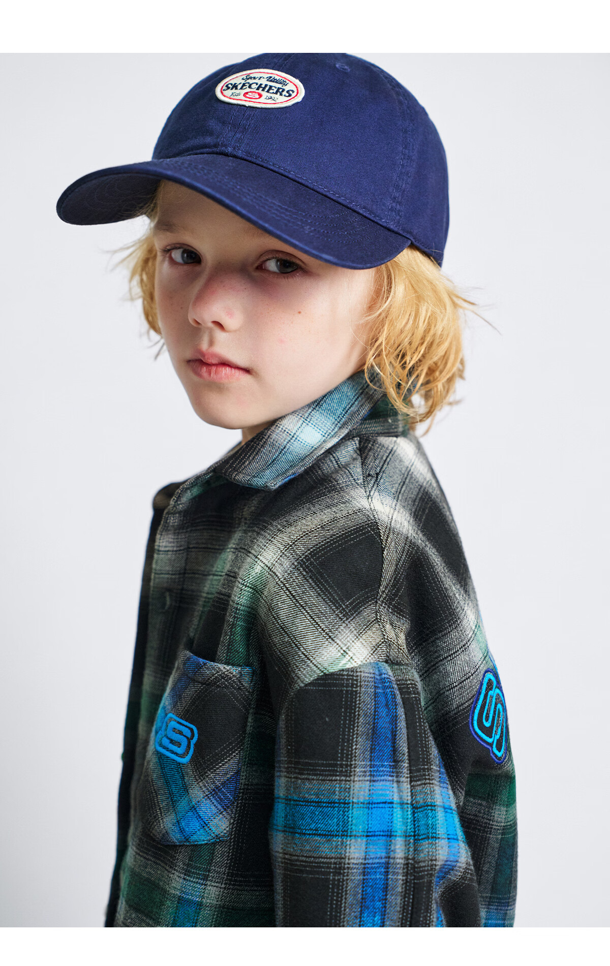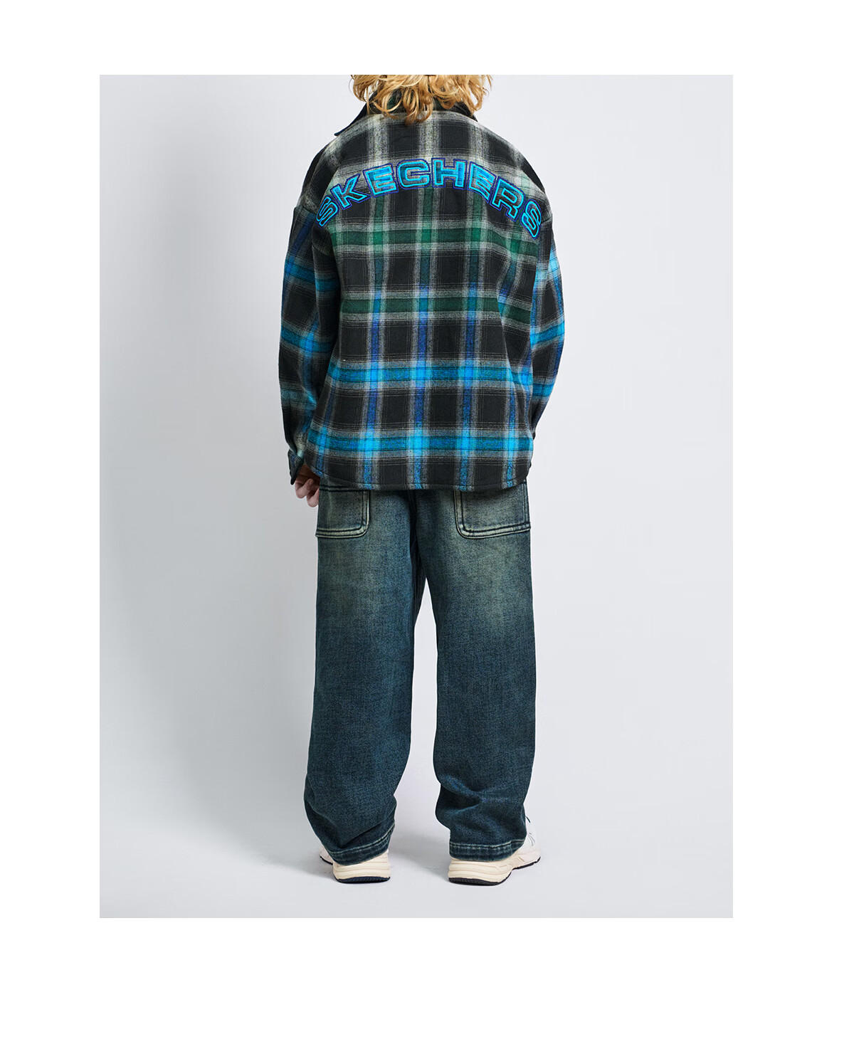 Skechers children's clothing boys' shirt winter style plaid top for middle and large children, lake blue 130