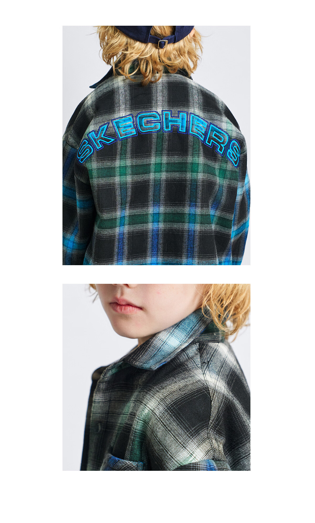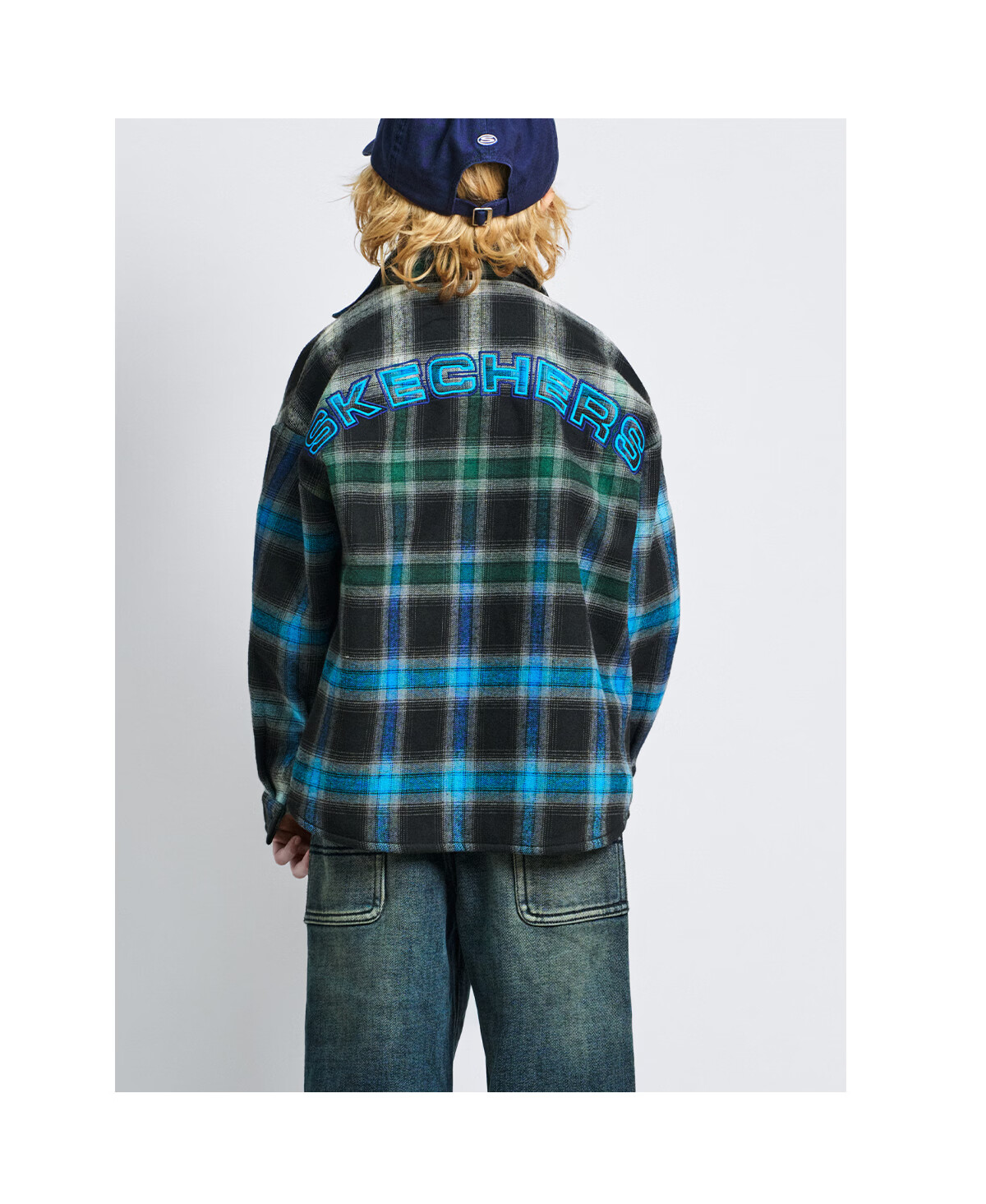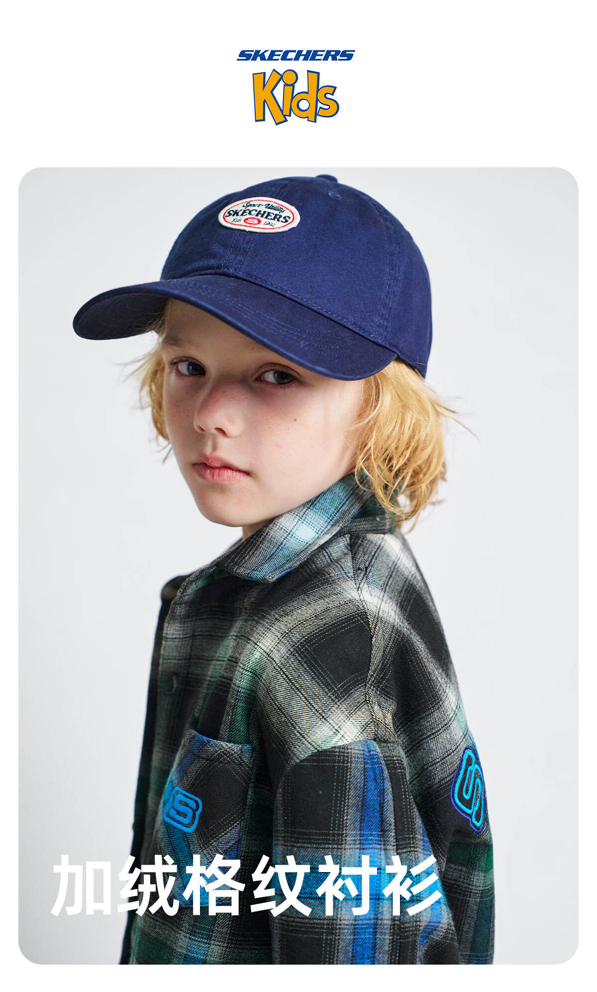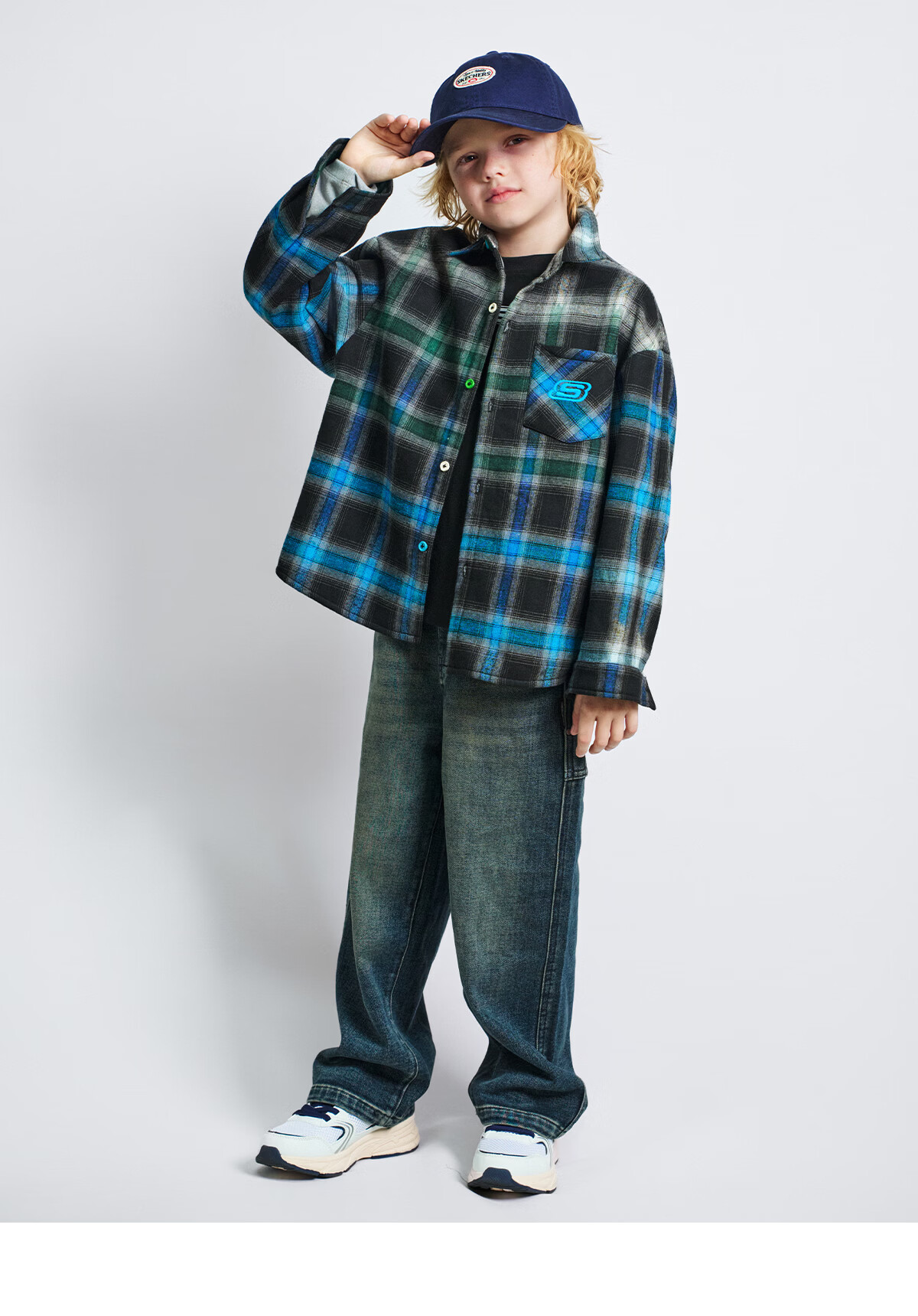 Skechers children's clothing boys' shirt winter style plaid top for middle and large children, lake blue 130