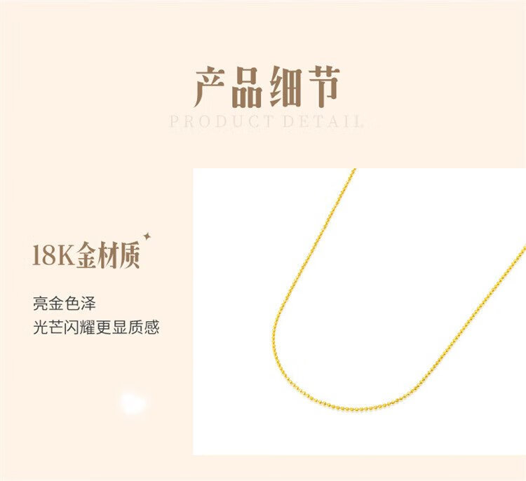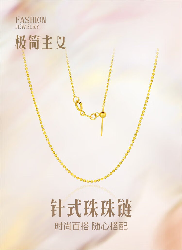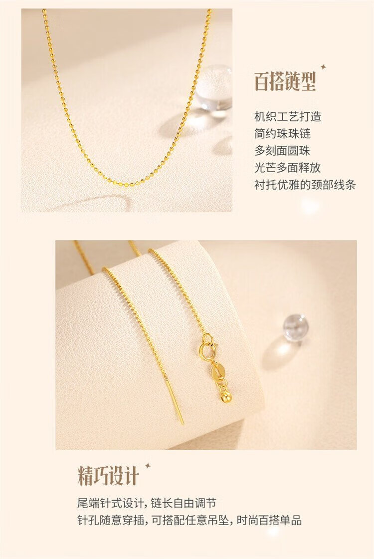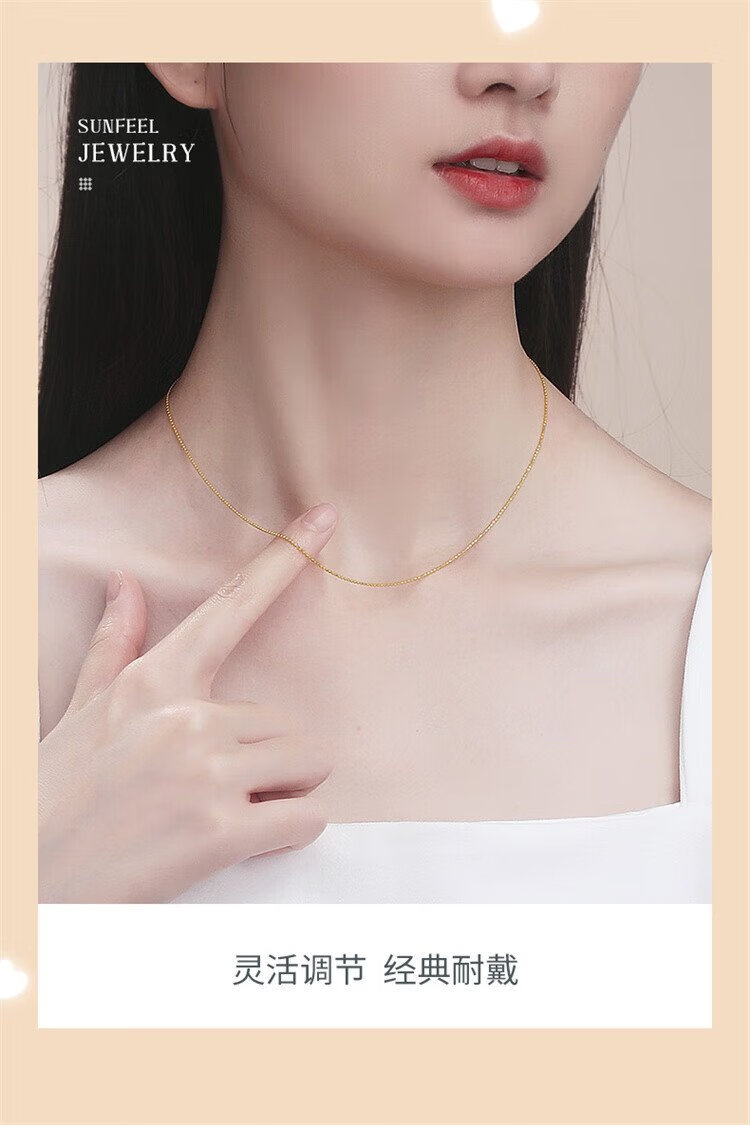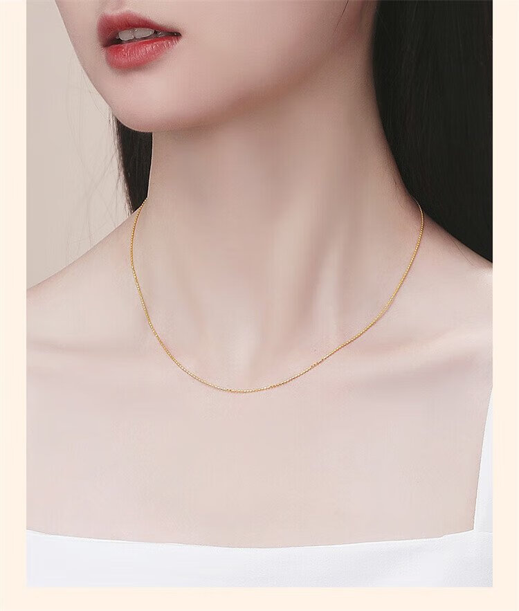 Safir 18K gold necklace for women, needle-type universal adjustable bead chain, clavicle chain for girlfriend, about 45cm