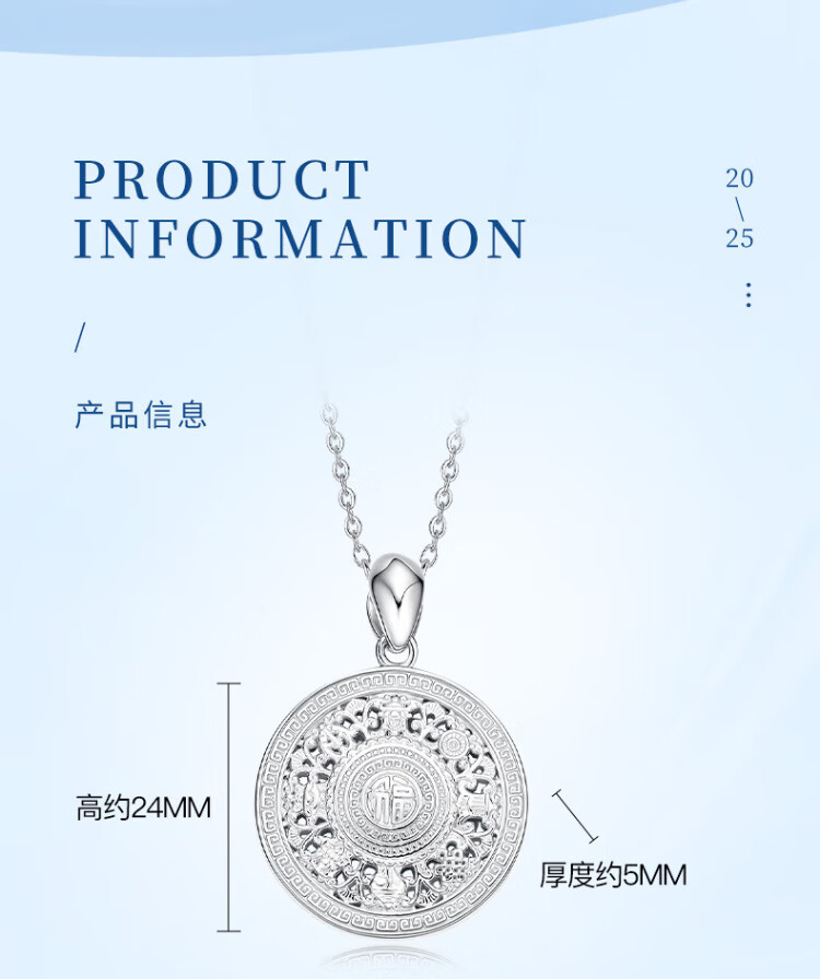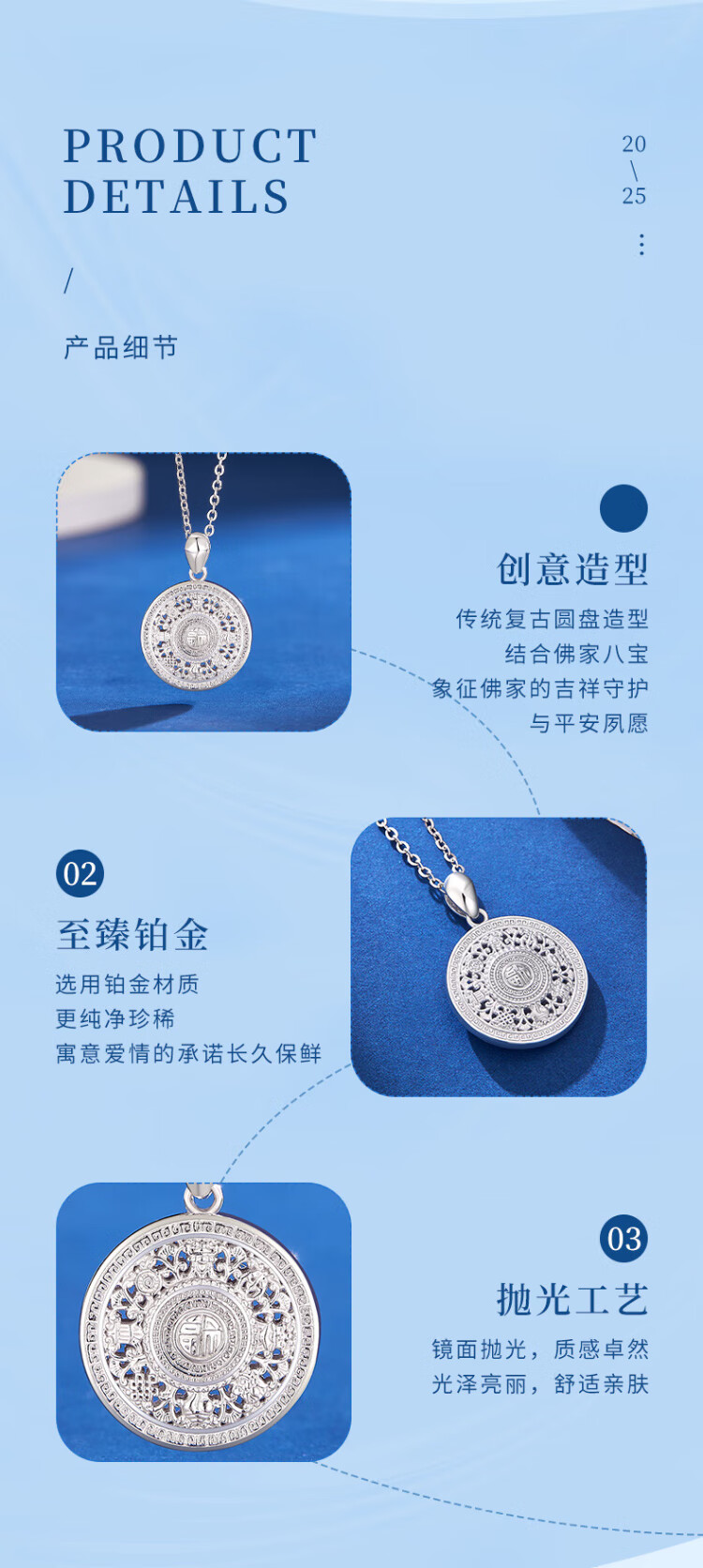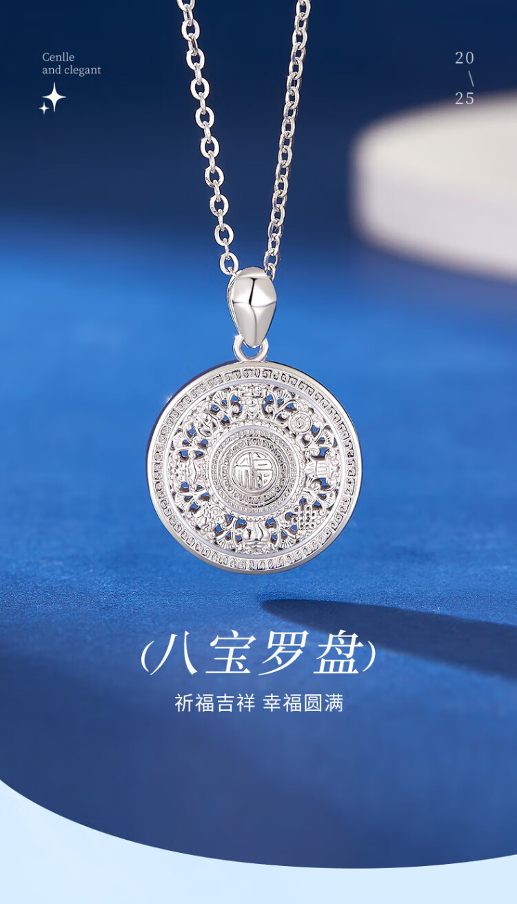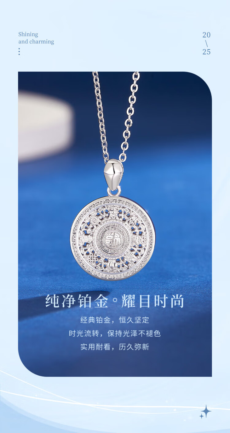 Lossot Eight Treasures Compass Platinum Pendant PT950 Platinum Pendant Safe Buckle as Birthday Gift for Girlfriend and Wife