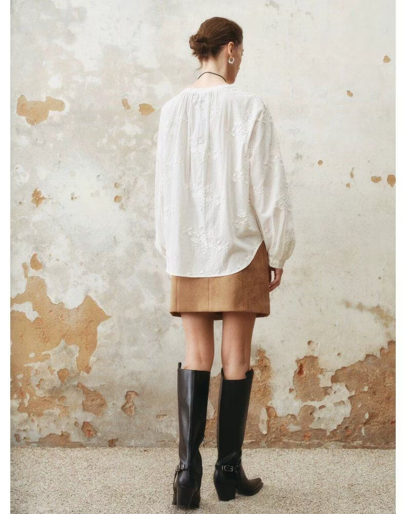 UR2026 Spring New Women's Pastel Style Casual Floral Embroidered Cardigan Shirt UWH260020