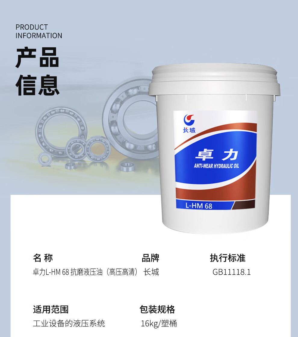 Great Wall Zhuoli L-HM68 anti-wear hydraulic oil (high definition and high pressure) 16kg/18L