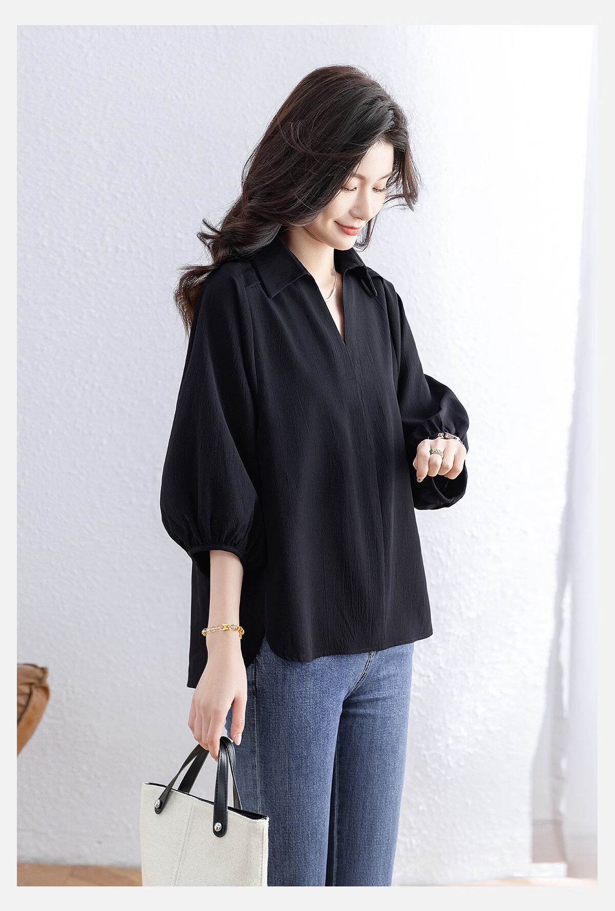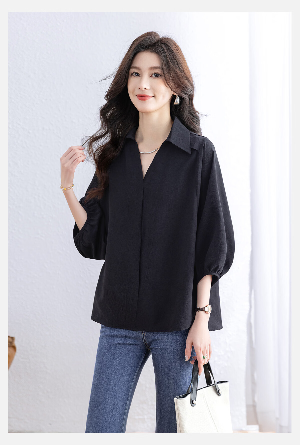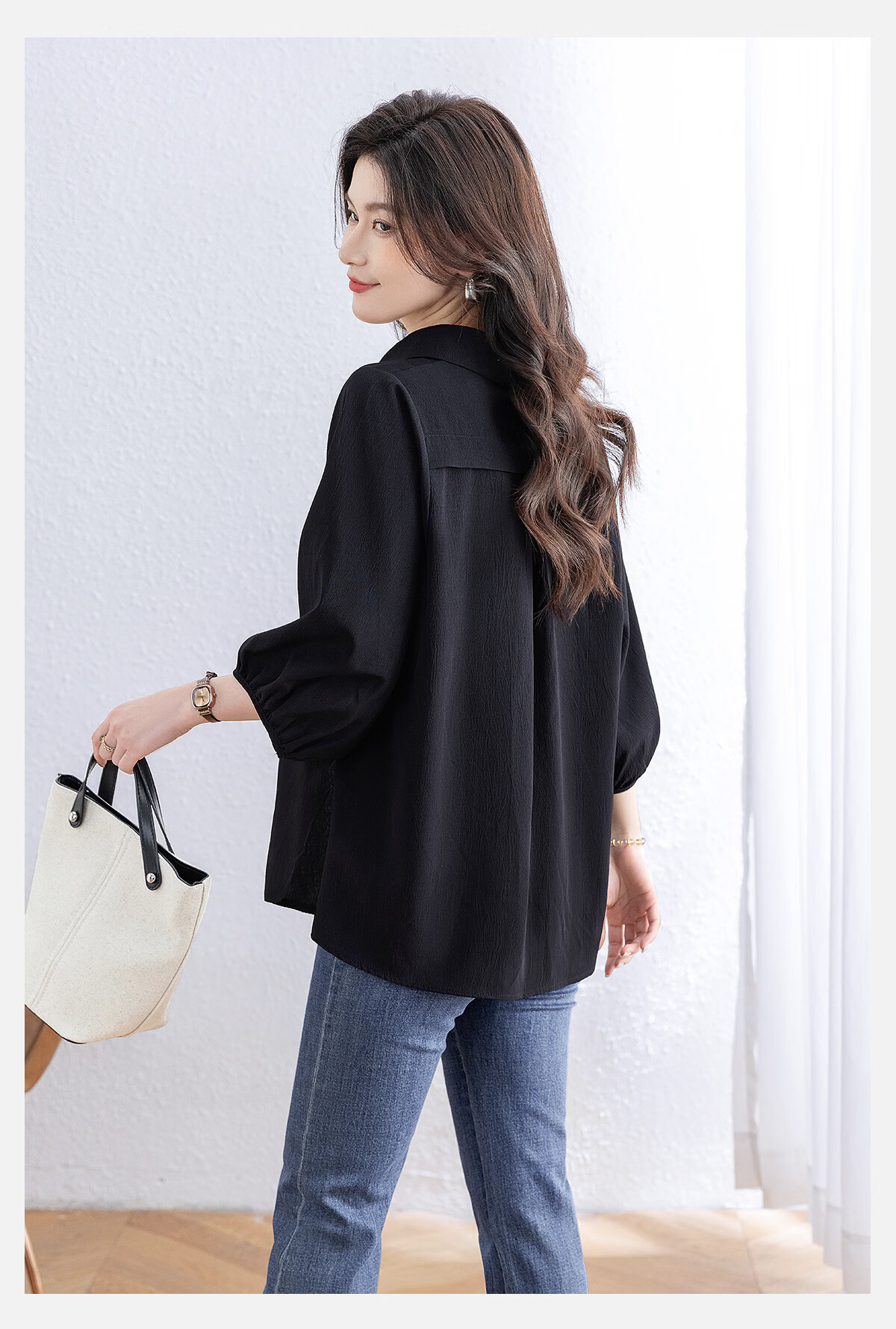 Sibaishe Solid Color Lapel Commuting Shirt Women's 2026 Spring New Fashion Loose Simple Temperament Shirt