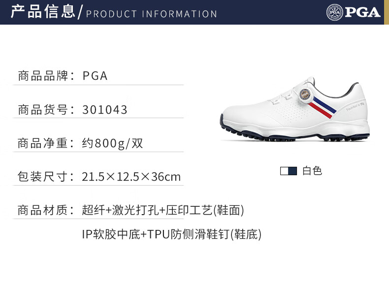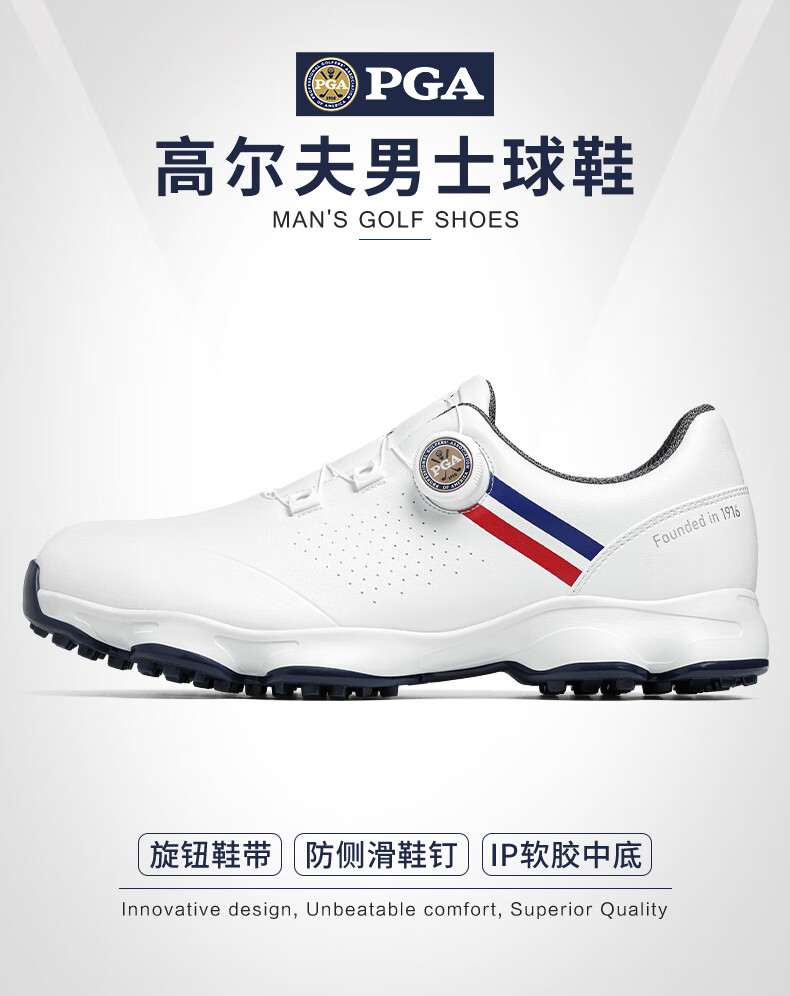 PGA golf shoes men's anti-slip spikes knob shoelaces autumn waterproof sports shoes men's shoes white 42